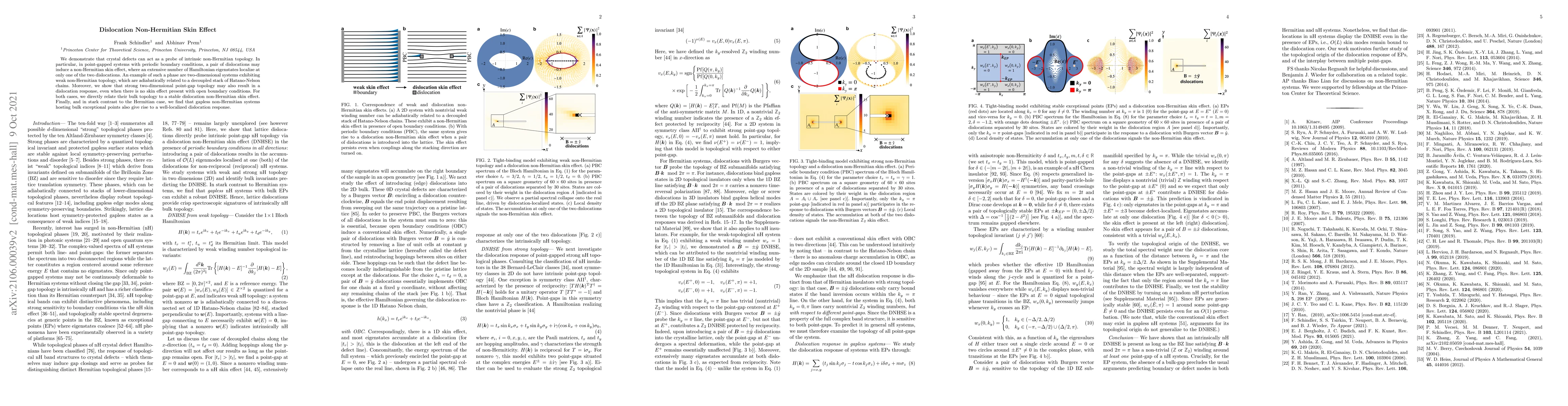 This research investigates how dislocations in crystal defects can reveal intrinsic non-Hermitian topology, leading to a dislocation non-Hermitian skin effect where eigenstates localize at one defect. It shows that both weak and strong non-Hermitian topologies can induce this effect, even in gapless systems with bulk exceptional points.