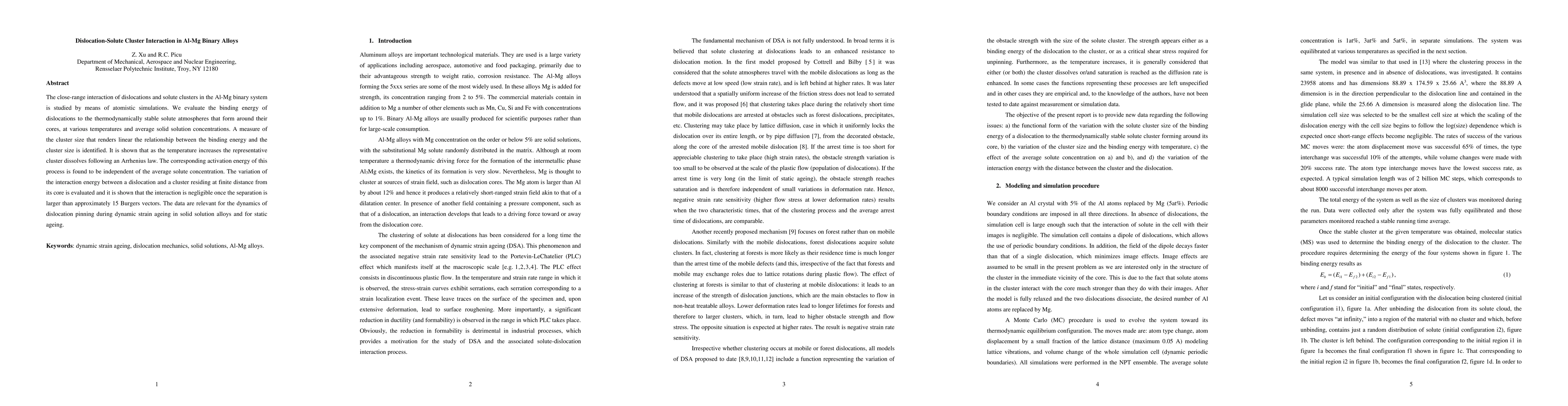 This study uses atomistic simulations to investigate the interaction between dislocations and solute clusters in Al-Mg alloys, revealing that the binding energy depends on cluster size and temperature, with negligible interaction beyond 15 Burgers vectors. The findings are crucial for understanding dislocation pinning in dynamic strain ageing and static ageing.