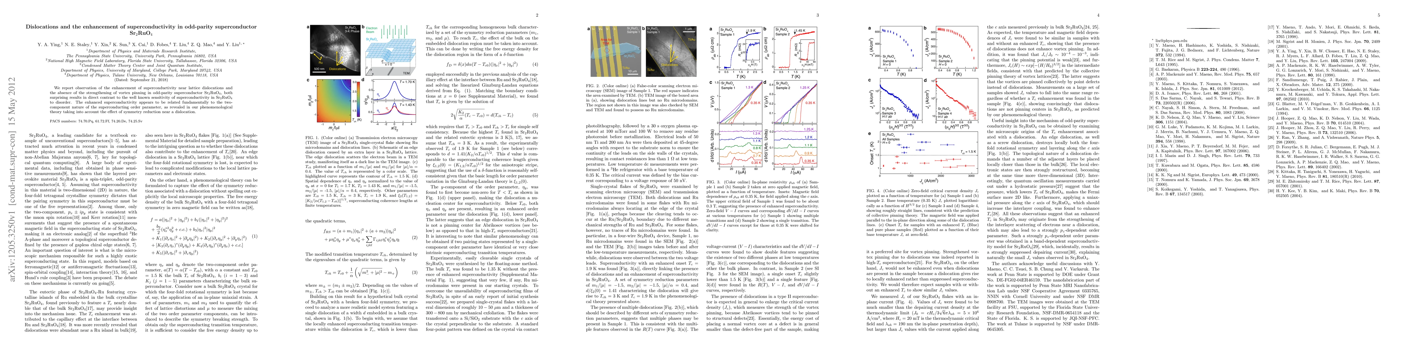 Summary: Researchers observe enhanced superconductivity near dislocations in Sr$_2$RuO$_4$, contrary to its usual sensitivity to disorder, suggesting a link to its two-component superconducting order parameter, with no observed vortex pinning enhancement. Phenomenological theory indicates symmetry reduction near dislocations plays a key role.