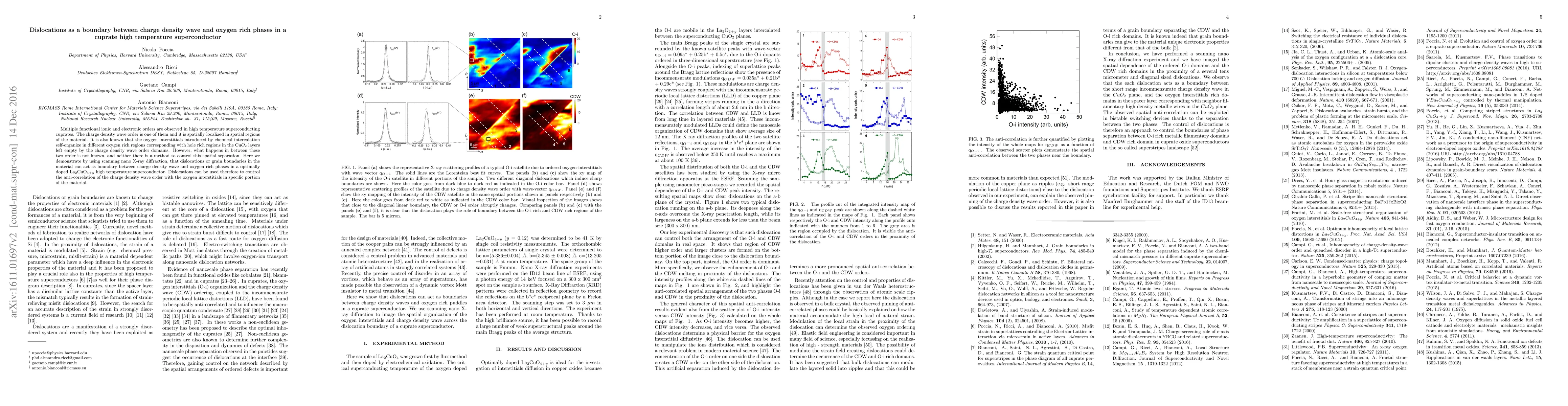 This study reveals that dislocations in optimally doped La$_2$CuO$_4$$_+$$_y$ high temperature superconductors act as boundaries between charge density wave and oxygen-rich phases, using scanning nano X-ray diffraction. This finding provides a method to control the spatial separation between these two orders.