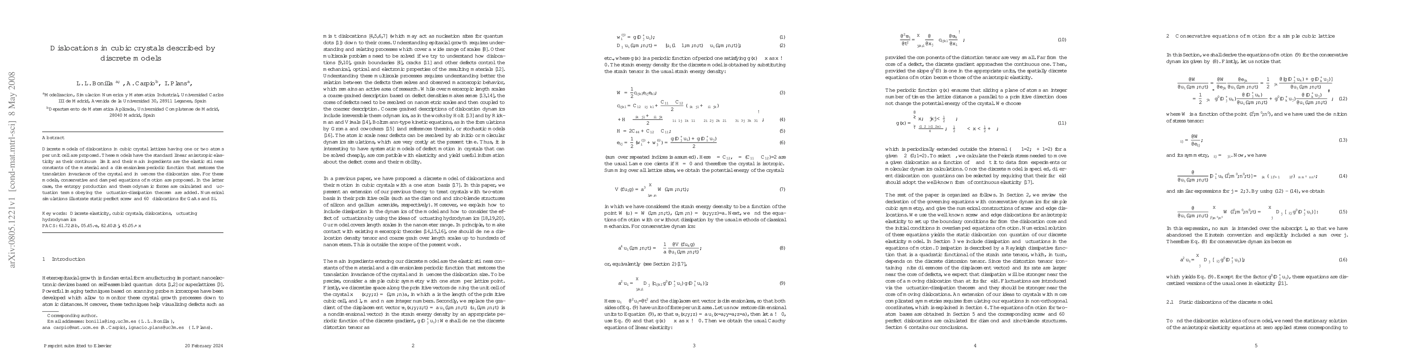 Researchers proposed discrete models to describe dislocations in cubic crystals, which capture key properties like elasticity and entropy production, and demonstrated their effectiveness through numerical simulations for specific materials like GaAs and Si.