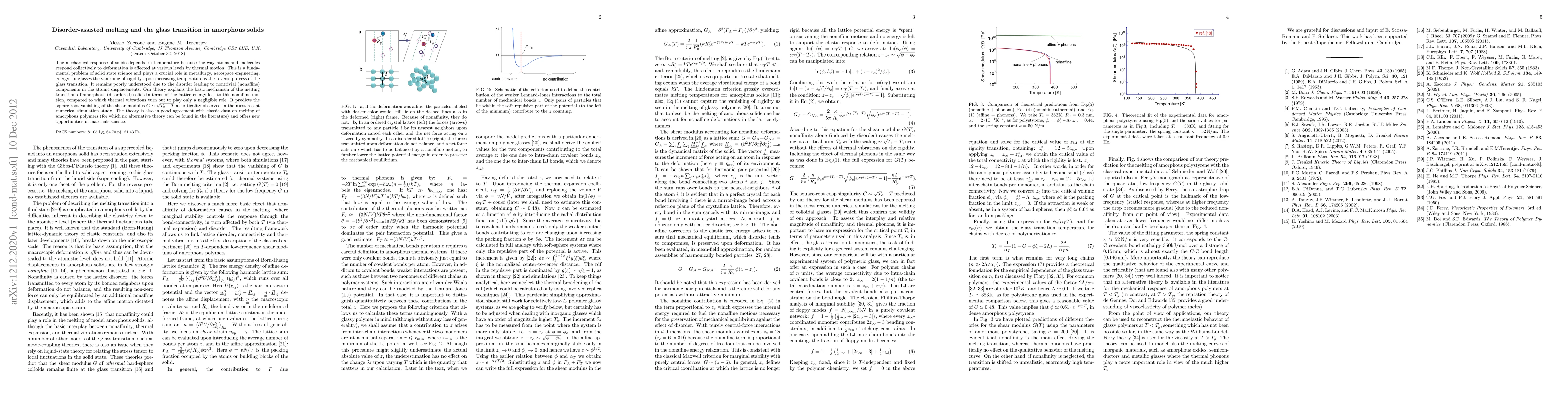 This paper proposes a theory explaining the melting transition in amorphous solids by attributing the loss of rigidity to nonaffine atomic displacements rather than thermal vibrations. It predicts the square-root behavior of the shear modulus near the critical temperature and aligns with both recent simulations and classic data on amorphous polymers.
