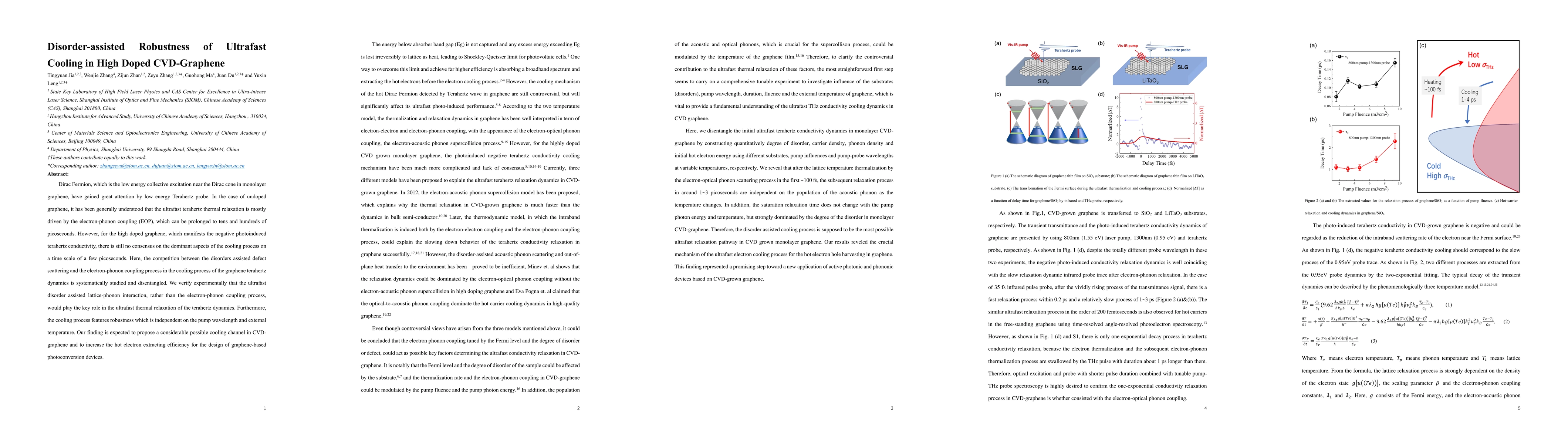 Dirac Fermion, which is the low energy collective excitation near the Dirac cone in monolayer graphene, have gained great attention by low energy Terahertz probe. In the case of undoped graphene, it has been generally understood that the ultrafast terahertz thermal relaxation is mostly driven by the electron-phonon coupling (EOP), which can be prolonged to tens and hundreds of picoseconds. However, for the high doped graphene, which manifests the negative photoinduced terahertz conductivity, there is still no consensus on the dominant aspects of the cooling process on a time scale of a few picoseconds. Here, the competition between the disorders assisted defect scattering and the electron-phonon coupling process in the cooling process of the graphene terahertz dynamics is systematically studied and disentangled. We verify experimentally that the ultrafast disorder assisted lattice-phonon interaction, rather than the electron-phonon coupling process, would play the key role in the ultrafast thermal relaxation of the terahertz dynamics. Furthermore, the cooling process features robustness which is independent on the pump wavelength and external temperature. Our finding is expected to propose a considerable possible cooling channel in CVD-graphene and to increase the hot electron extracting efficiency for the design of graphene-based photoconversion devices.