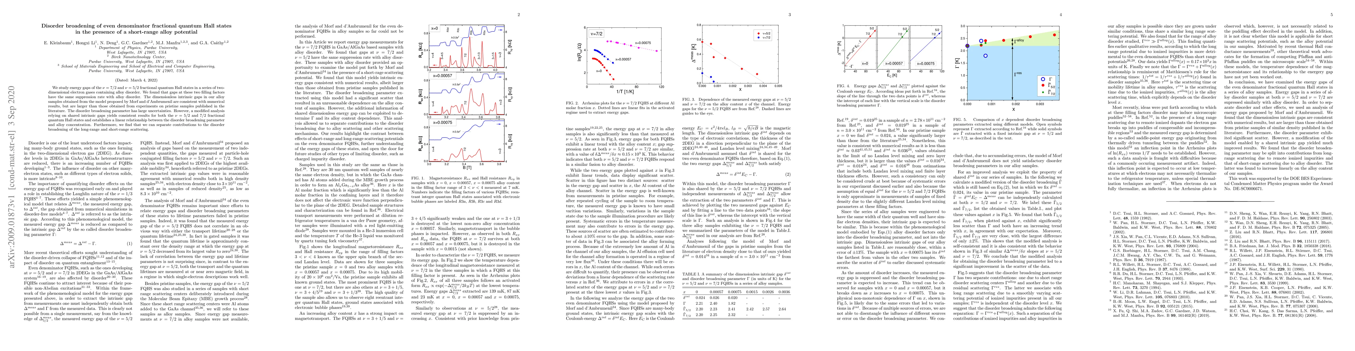 This paper investigates the energy gaps of $\nu=7/2$ and $\nu=5/2$ fractional quantum Hall states under alloy disorder, revealing consistent suppression rates and a linear relationship between disorder broadening and alloy concentration. The intrinsic gaps from theoretical models match numerical results but exceed experimental values for pristine samples.