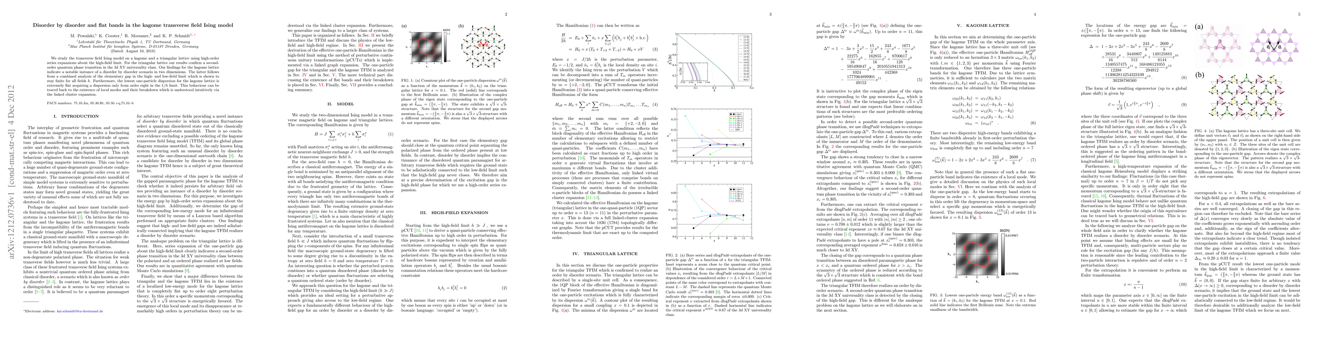 This paper investigates the transverse field Ising model on kagome and triangular lattices, confirming a second-order quantum phase transition for the triangular lattice. For the kagome lattice, it identifies a unique "disorder by disorder" scenario with a finite elementary gap across all fields, and reveals an extremely flat lowest one-particle dispersion due to the breakdown of local modes.