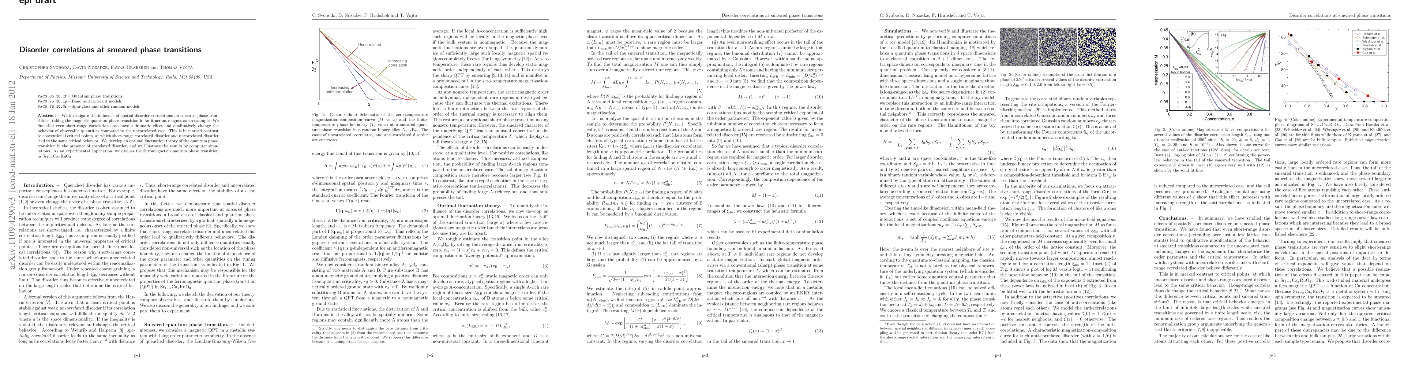 This paper examines how spatial disorder correlations impact smeared phase transitions, particularly in quantum phase transitions of itinerant magnets. It reveals that short-range disorder correlations can dramatically alter observable quantities, contrasting with conventional critical phenomena where such correlations are typically irrelevant. The study develops a new fluctuation theory and uses simulations to illustrate these effects, with a focus on the ferromagnetic quantum phase transition in Sr$_{1-x}$Ca$_x$RuO$_3$.