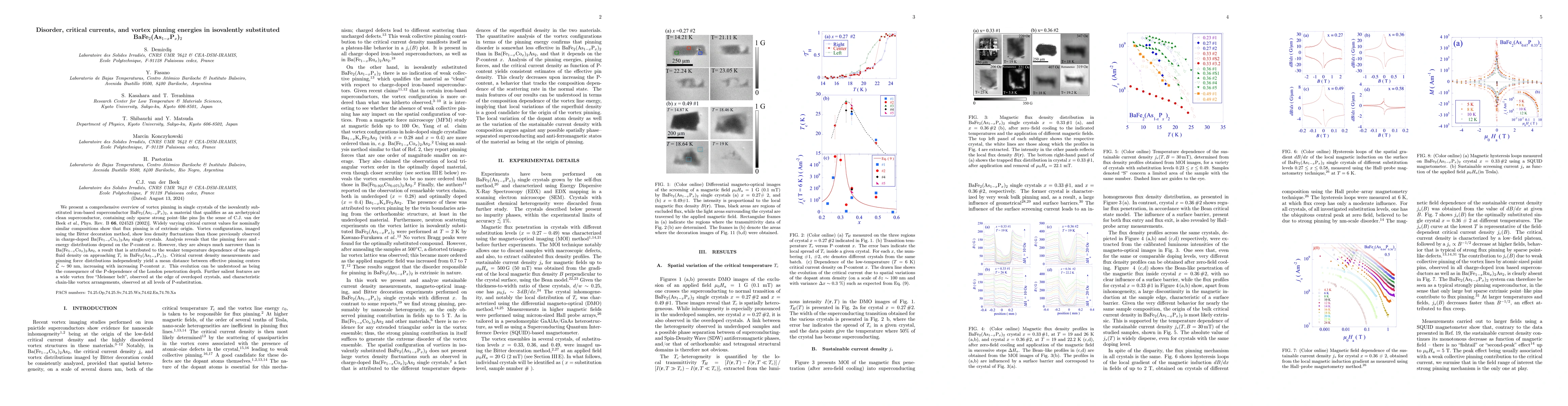 This paper investigates vortex pinning in isovalently substituted BaFe$_{2}$(As$_{1-x}$P$_{x}$)$_{2}$ superconductors, revealing that critical current values vary extrinsically and pinning force is dependent on P-content. The study finds narrower pinning force distributions compared to Ba(Fe$_{1-x}$Co$_{x}$)$_{2}$As$_{2}$ due to weaker temperature dependence of the superfluid density, with a mean distance between pinning centers of approximately 90 nm.