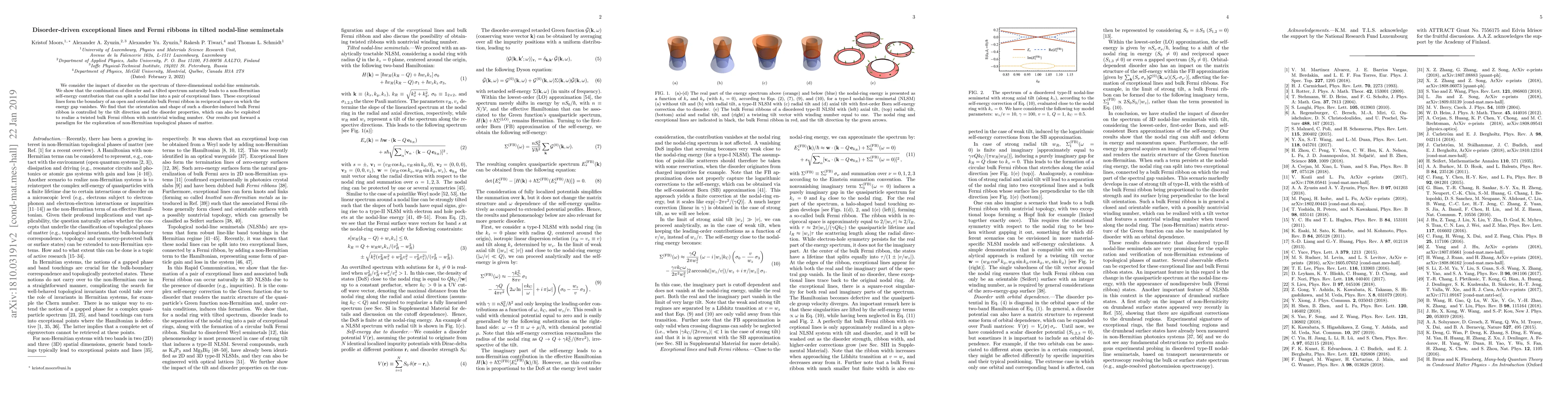 This paper investigates how disorder affects the spectrum of tilted nodal-line semimetals, demonstrating that it can split nodal lines into exceptional lines, forming Fermi ribbons where the energy gap vanishes. The ribbon's orientation and shape are influenced by the tilt direction and disorder properties, enabling the realization of a twisted ribbon with a nontrivial winding number.