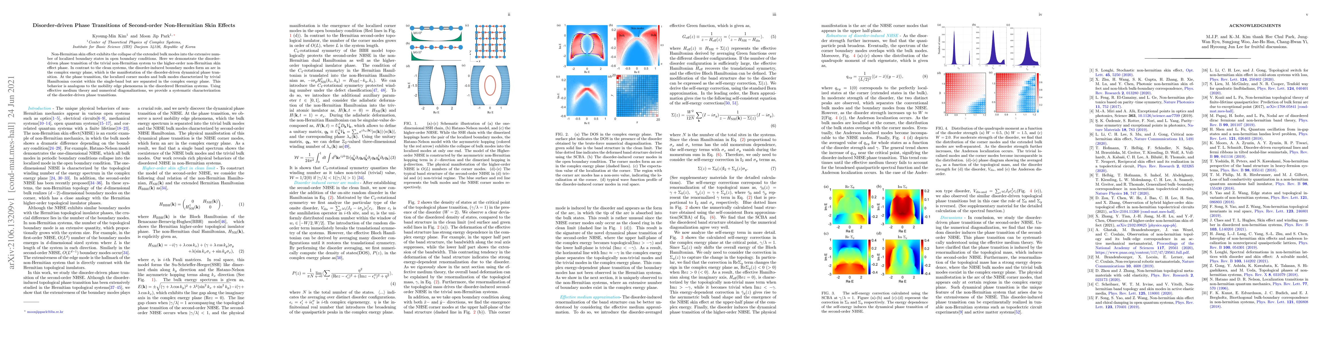 The paper presents a detailed theoretical analysis of disorder-driven phase transitions in second-order non-Hermitian skin effects, utilizing numerical diagonalization, effective medium theory, and self-consistent Born approximation to characterize these transitions.