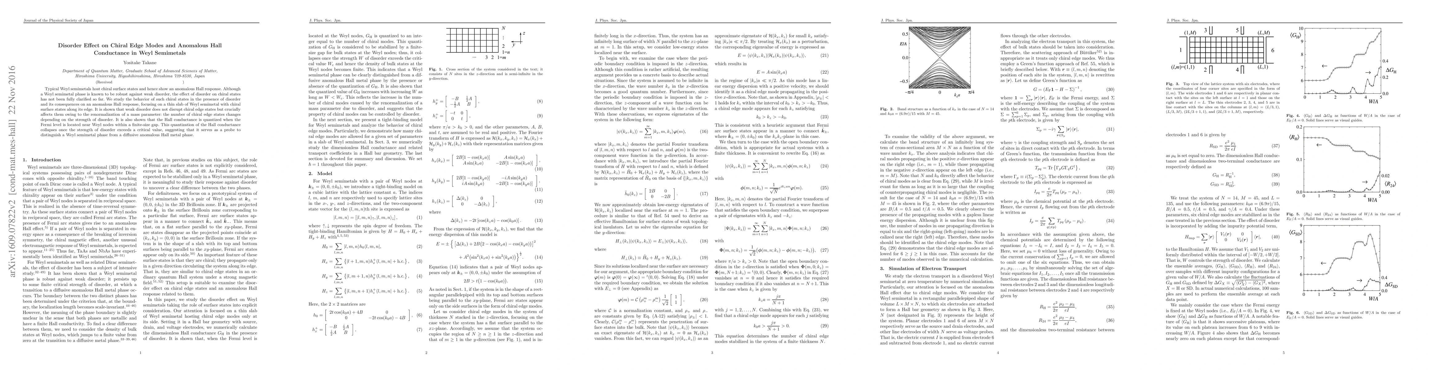 This study investigates how weak disorder affects chiral edge states and anomalous Hall conductance in Weyl semimetals. It reveals that while disorder does not disrupt chiral edge states, it alters them by changing the number of these states depending on disorder strength. Additionally, the study shows quantized Hall conductance near Weyl nodes, which collapses at a critical disorder level, indicating it can distinguish Weyl semimetals from diffusive anomalous Hall metals.