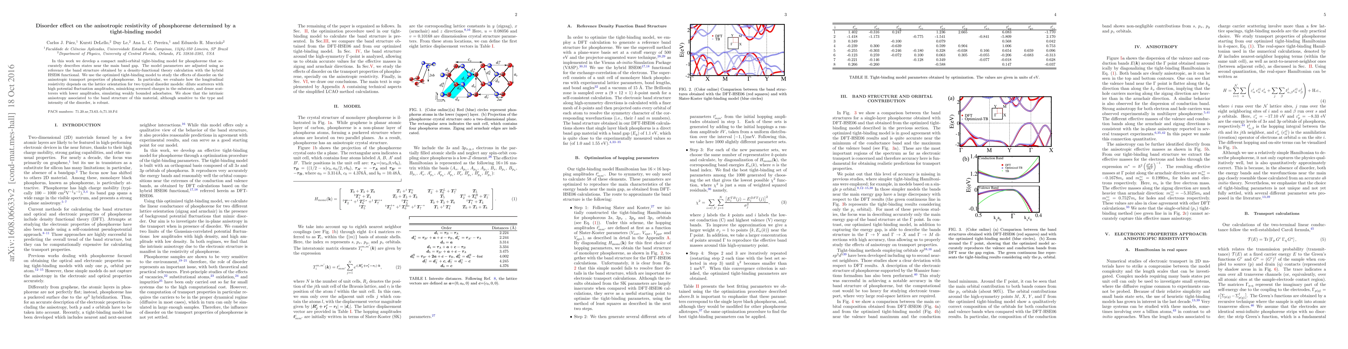 This paper develops a tight-binding model for phosphorene, calibrated against DFT calculations, to study the impact of disorder on its anisotropic resistivity. It finds that while disorder affects resistivity, the intrinsic anisotropy of phosphorene remains robust regardless of the type and intensity of disorder.