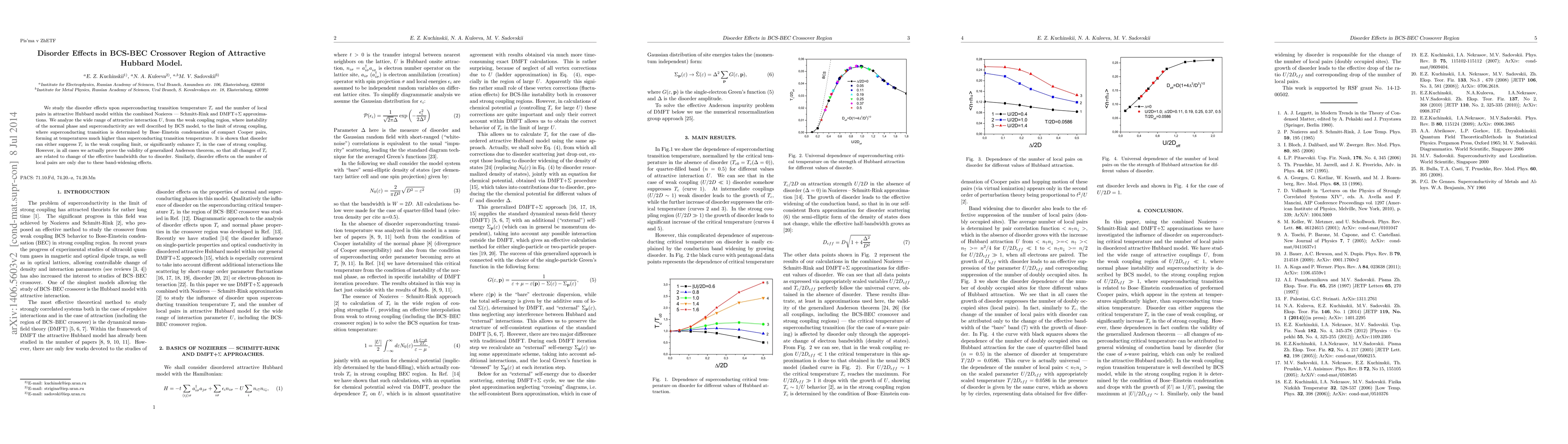 This paper investigates the impact of disorder on the superconducting transition temperature T_c and local pair number in the attractive Hubbard model across the BCS-BEC crossover. It finds that disorder can either suppress or enhance T_c depending on the interaction strength, but all changes are ultimately tied to the effective bandwidth modification due to disorder.