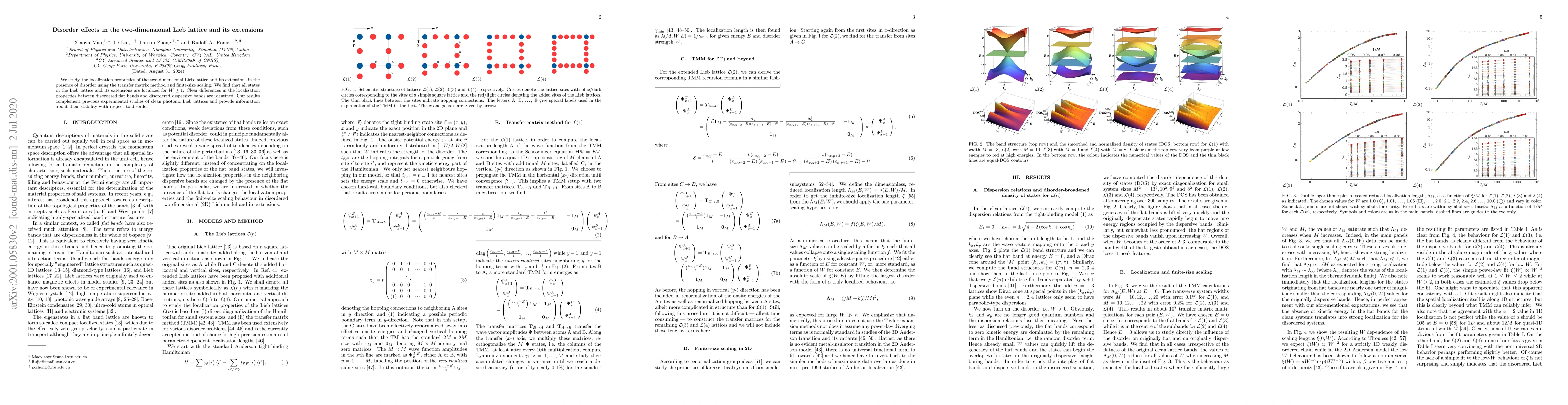 This paper investigates the localization behavior of the two-dimensional Lieb lattice and its extensions under disorder using transfer matrix methods and finite-size scaling. It reveals that all states are localized when $W \geq 1$, highlighting distinct localization properties between disordered flat bands and dispersive bands.