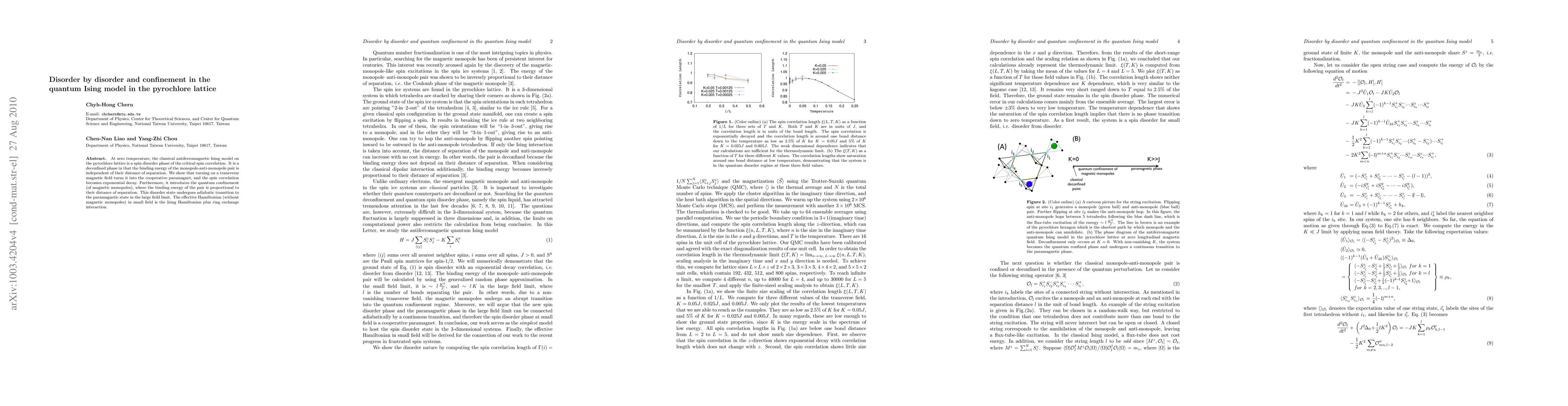 At zero temperature, the classical antiferromagnetic Ising model on the pyrochlore lattice is a spin disorder phase of the critical spin correlation. It is a deconfined phase in that the binding energy of the monopole-anti-monopole pair is independent of their distance of separation. We show that turning on a transverse magnetic field turns it into the cooperative paramagnet, and the spin correlation becomes exponential decay. Furthermore, it introduces the quantum confinement (of magnetic monopoles), where the binding energy of the pair is proportional to their distance of separation. This disorder state undergoes adiabatic transition to the paramagnetic state in the large field limit. The effective Hamiltonian (without magnetic monopoles) in small field is the Ising Hamiltonian plus ring exchange interaction.