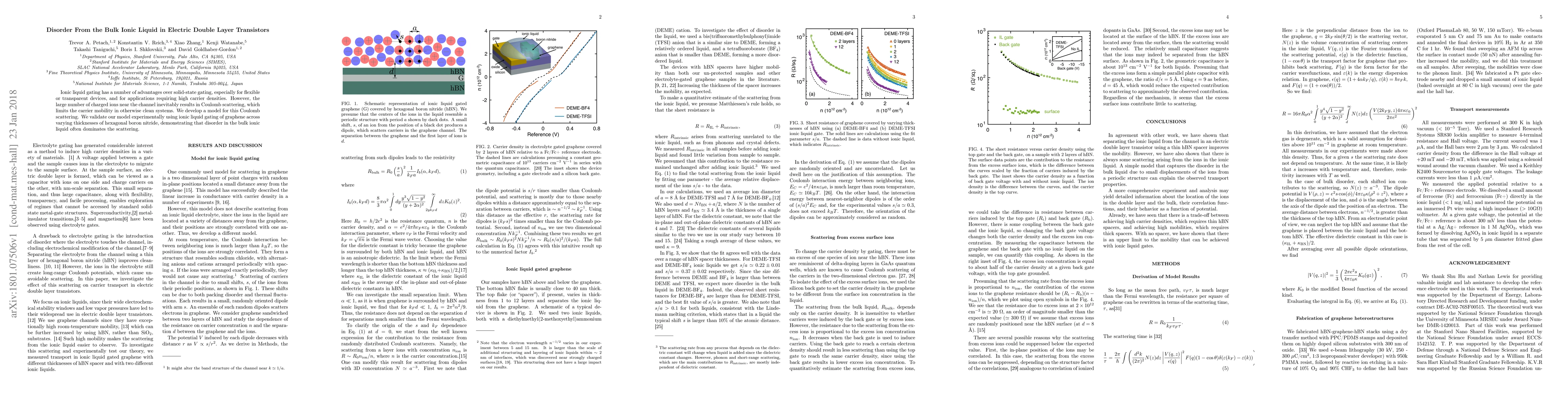 This paper develops a model to explain Coulomb scattering in electric double layer transistors using ionic liquid gating, showing that bulk ionic liquid disorder significantly impacts carrier mobility. Experimental validation on graphene gated by ionic liquid through varying thicknesses of hexagonal boron nitride confirms the model's predictions.