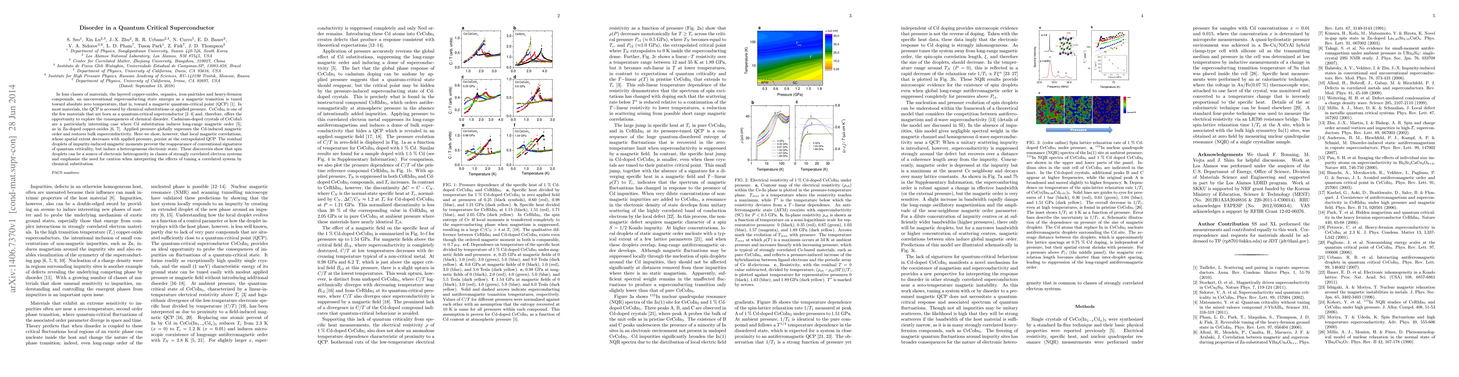In four classes of materials, the layered copper-oxides, organics, iron-pnictides and heavy-fermion compounds, an unconventional superconducting state emerges as a magnetic transition is tuned toward absolute zero temperature, that is, toward a magnetic quantum-critical point (QCP). In most materials, the QCP is accessed by chemical substitutions or applied pressure. CeCoIn5 is one of the few materials that are born as a quantum-critical superconductor and, therefore, offers the opportunity to explore the consequences of chemical disorder. Cadmium-doped crystals of CeCoIn5 are a particularly interesting case where Cd substitution induces long-range magnetic order, as in Zn-doped copper-oxides. Applied pressure globally supresses the Cd-induced magnetic order and restores bulk superconductivity. Here we show, however, that local magnetic correlations, whose spatial extent decreases with applied pressure, persist at the extrapolated QCP. The residual droplets of impurity-induced magnetic moments prevent the reappearance of conventional signatures of quantum criticality, but induce a heterogeneous electronic state. These discoveries show that spin droplets can be a source of electronic heterogeneity in classes of strongly correlated electron systems and emphasize the need for caution when interpreting the effects of tuning a correlated system by chemical substitution.