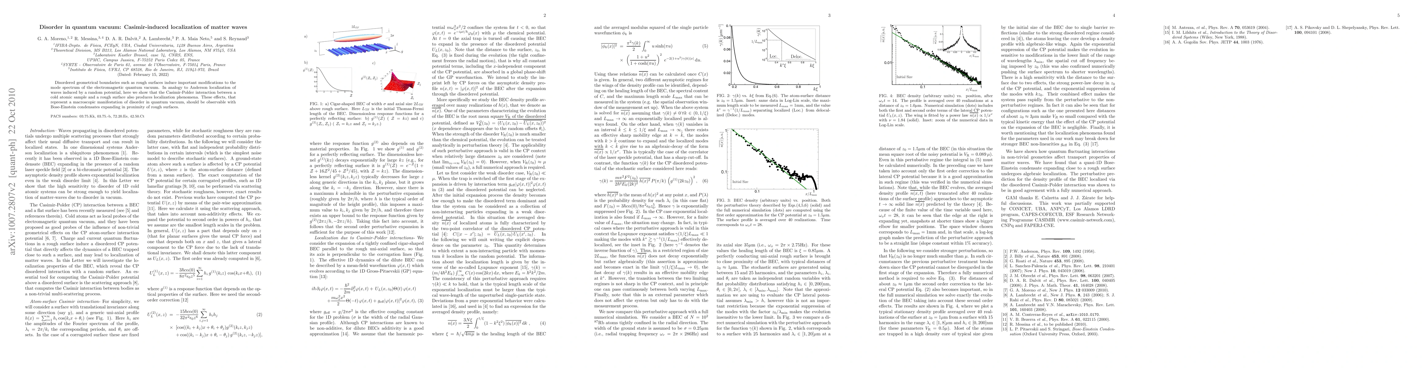 This research demonstrates that disordered geometrical boundaries like rough surfaces induce significant changes to the electromagnetic quantum vacuum's mode spectrum, analogous to Anderson localization. It shows that the Casimir-Polder interaction between cold atoms and rough surfaces can cause localization phenomena observable in Bose-Einstein condensates near such surfaces.