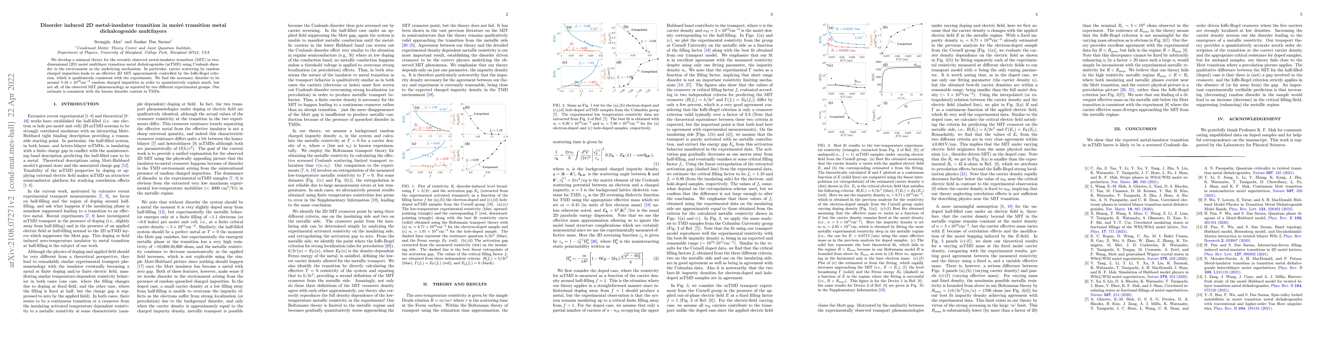 This paper develops a theoretical framework for the metal-insulator transition in 2D moiré multilayer transition metal dichalcogenides, attributing it to Coulomb disorder from random charged impurities. The model aligns with the Ioffe-Regel criterion and estimates the required disorder level to explain observed experimental phenomena.