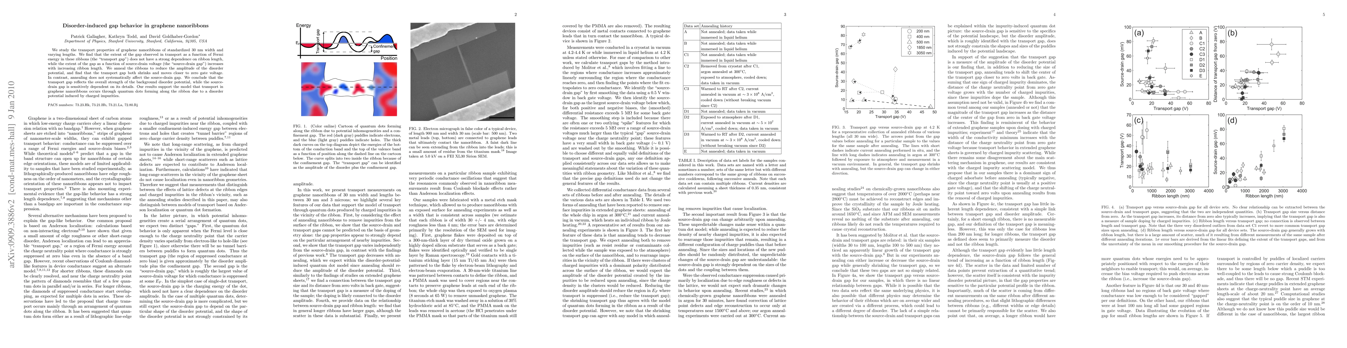 The study reveals that in graphene nanoribbons, the transport gap is relatively unaffected by ribbon length but is sensitive to disorder reduction, whereas the source-drain gap increases with ribbon length and is less influenced by disorder. This suggests that the transport gap is a reflection of overall disorder strength, while the source-drain gap is more detail-sensitive.