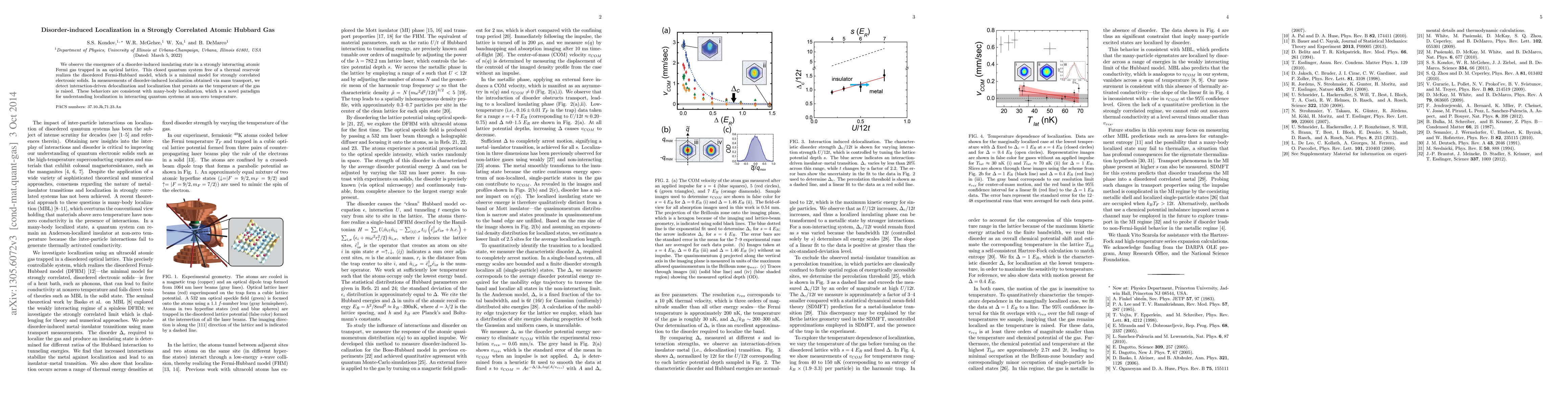 This study demonstrates the emergence of disorder-induced insulating states in a strongly correlated atomic Fermi gas in an optical lattice, aligning with the disordered Fermi-Hubbard model. The findings reveal interaction-driven delocalization and localization persisting at elevated temperatures, supporting the concept of many-body localization in interacting quantum systems.