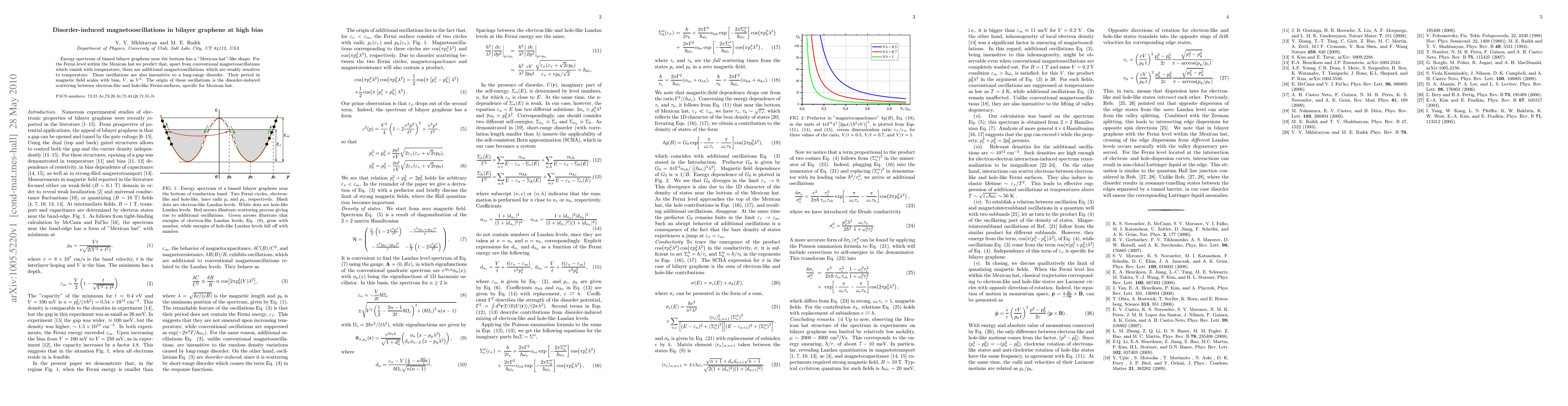 Energy spectrum of biased bilayer graphene near the bottom has a "Mexican-hat"-like shape. For the Fermi level within the Mexican hat we predict that, apart from conventional magnetooscillations which vanish with temperature, there are additional magnetooscillations which are weakly sensitive to temperature. These oscillations are also insensitive to a long-range disorder. Their period in magnetic field scales with bias, V, as V^2. The origin of these oscillations is the disorder-induced scattering between electron-like and hole-like Fermi-surfaces, specific for Mexican hat.