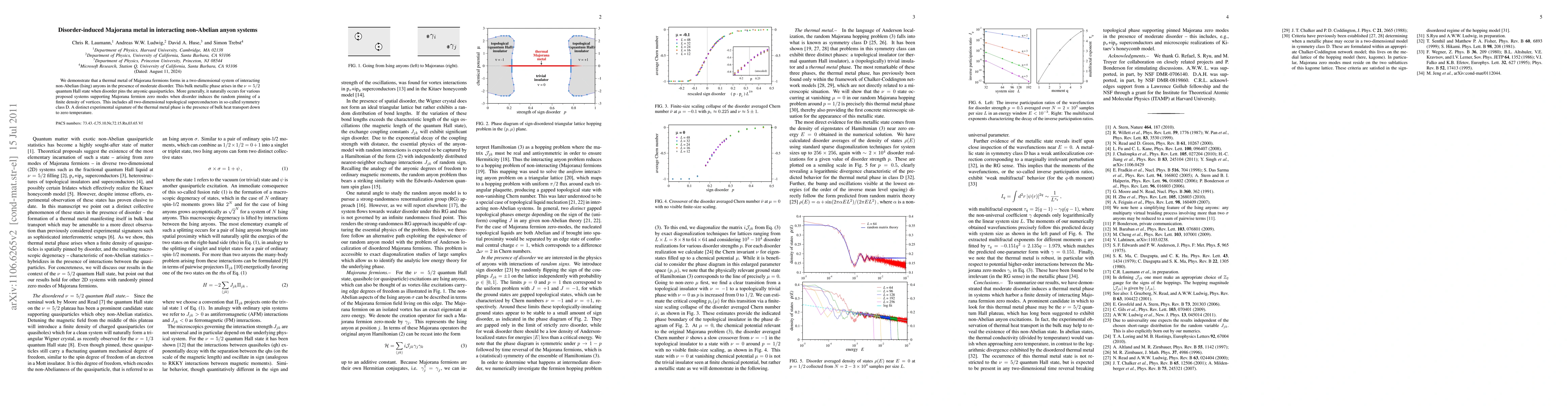 This paper shows that disorder can induce a thermal metal of Majorana fermions in interacting non-Abelian anyon systems, particularly in the $\nu=5/2$ quantum Hall state, characterized by bulk heat transport even at zero temperature. This phenomenon is applicable to various two-dimensional topological superconductors in symmetry class D.
