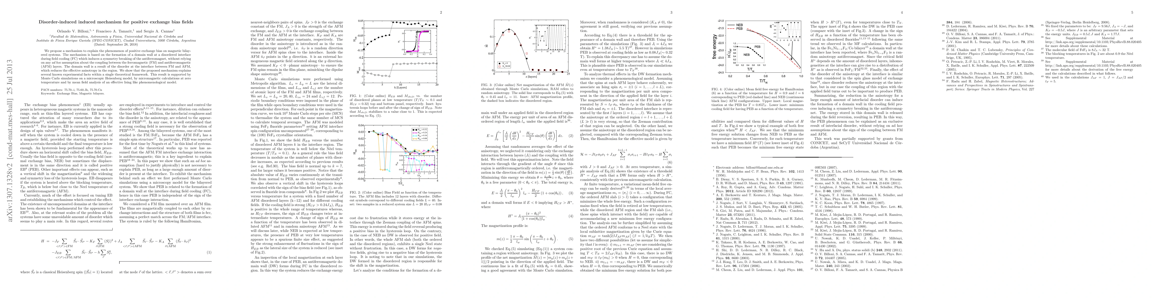 This paper proposes a disorder-induced mechanism for positive exchange bias in magnetic bilayers, attributing it to a domain wall at a disordered interface that breaks the antiferromagnet's symmetry during field cooling. The findings are supported by Monte Carlo simulations, micromagnetic calculations, and mean field analysis.