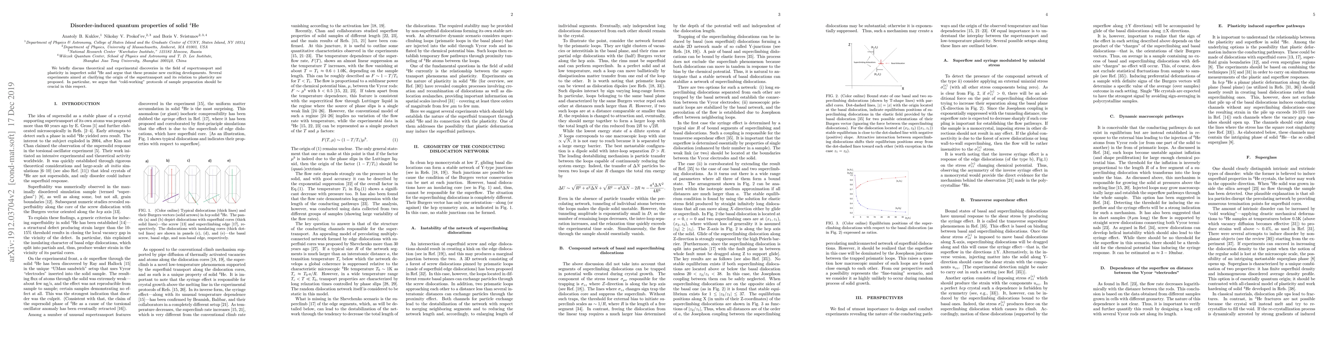 We briefly discuss theoretical and experimental discoveries in the field of supertransport and plasticity in imperfect solid \he4 and argue that these promise new exciting developments. Several experiments aimed at clarifying the origin of the supertransport and its relation to plasticity are proposed. In particular, we argue that "cold-working" protocols of sample preparation should be crucial in this respect.