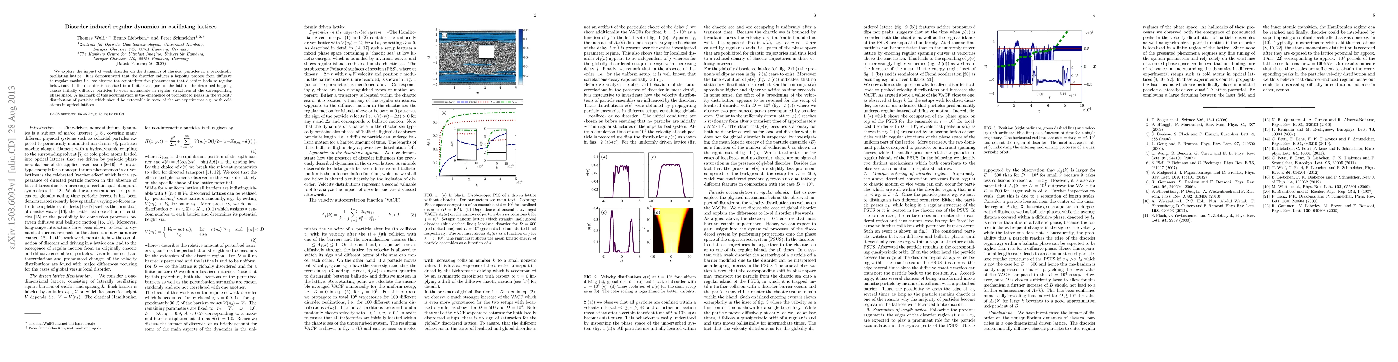 Researchers found that introducing weak disorder into a periodic oscillating lattice causes particles to transition from diffusive motion to regular behavior, resulting in the formation of structured patterns in phase space. This phenomenon has significant implications for experiments with cold atoms in optical lattices.