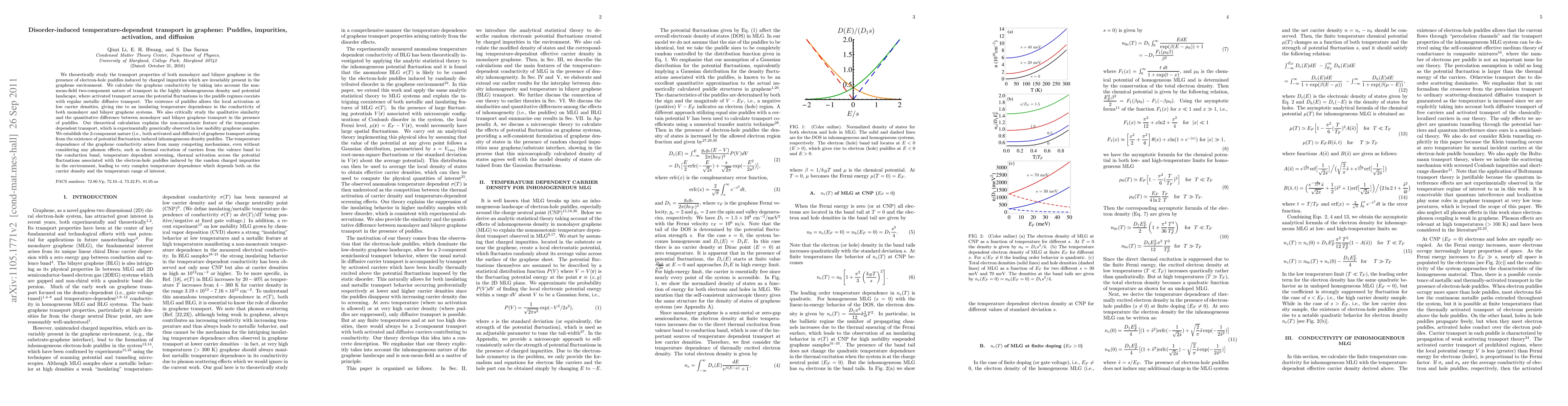 This paper theoretically explores how charged impurities in graphene create electron-hole puddles, influencing transport properties through both activated and diffusive mechanisms. It explains the insulating temperature dependence in conductivity due to these puddles, and highlights the complex interplay of various temperature-dependent transport mechanisms.
