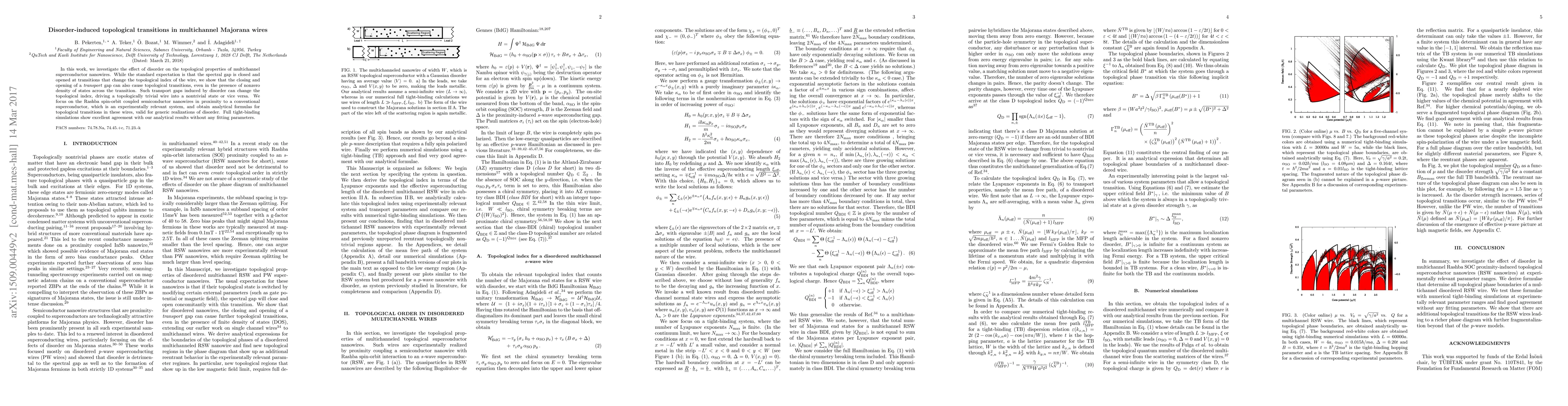 This paper explores how disorder affects the topological properties of multichannel superconductor nanowires, demonstrating that transport gaps induced by disorder can lead to topological transitions, even when the spectral gap remains open. Analytical formulas for these transitions are derived and validated by tight-binding simulations.