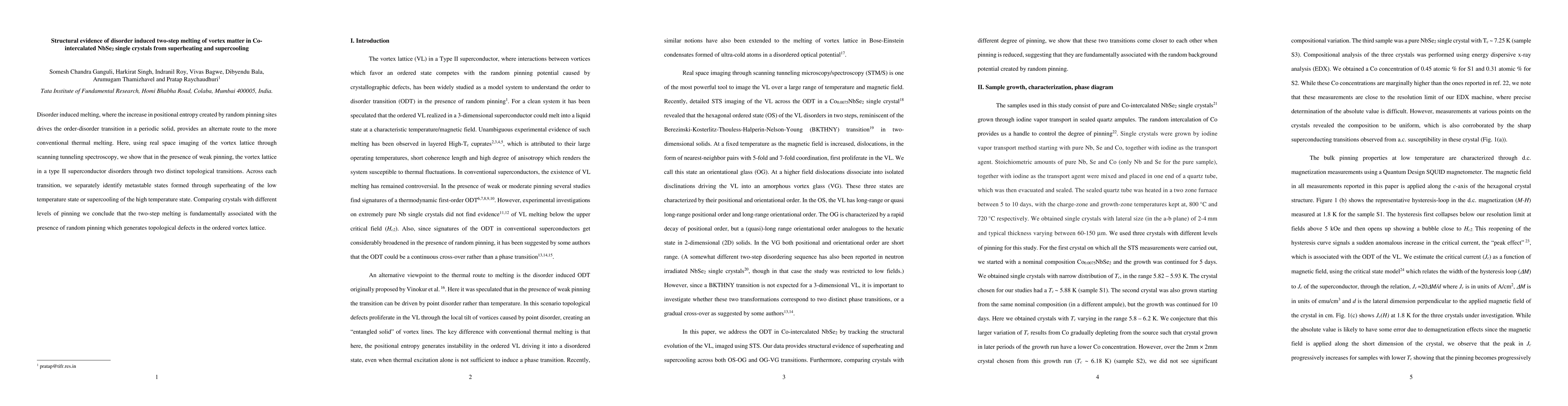 The research demonstrates that disorder-induced melting in Co-intercalated NbSe$_2$ single crystals results in a two-step melting process of the vortex lattice, driven by random pinning sites, with distinct metastable states identified across each transition. The findings link this phenomenon to the presence of topological defects generated by weak pinning.