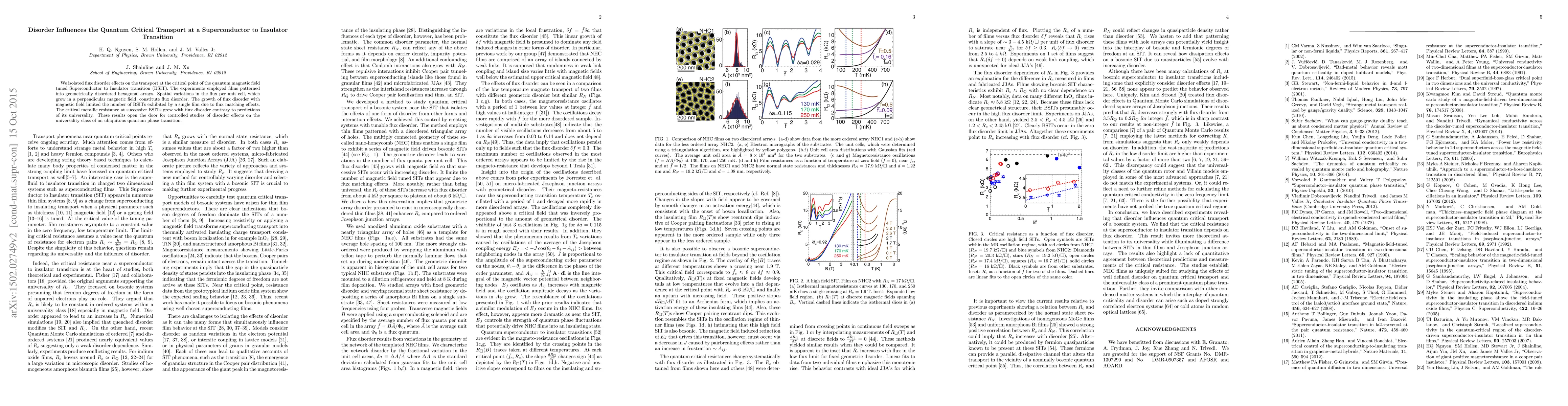 We isolated flux disorder effects on the transport at the critical point of the quantum magnetic field tuned Superconductor to Insulator transition (BSIT). The experiments employed films patterned into geometrically disordered hexagonal arrays. Spatial variations in the flux per unit cell, which grow in a perpendicular magnetic field, constitute flux disorder. The growth of flux disorder with magnetic field limited the number of BSITs exhibited by a single film due to flux matching effects. The critical metallic resistance at successive BSITs grew with flux disorder contrary to predictions of its universality. These results open the door for controlled studies of disorder effects on the universality class of an ubiquitous quantum phase transition.