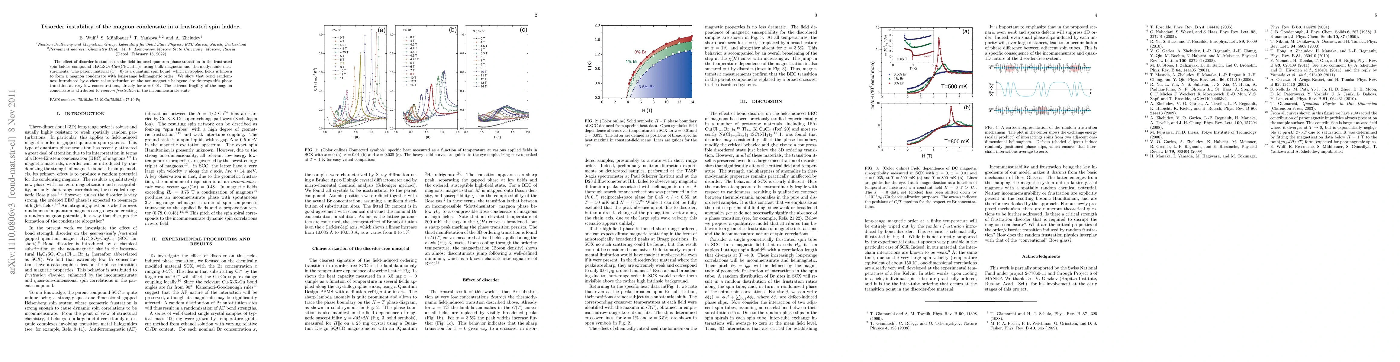 Researchers studied how disorder affects a quantum phase transition in a spin-ladder compound, finding that even small amounts of randomness destroy the formation of a stable magnon condensate. The extreme fragility of this phenomenon is attributed to random frustration in the system.
