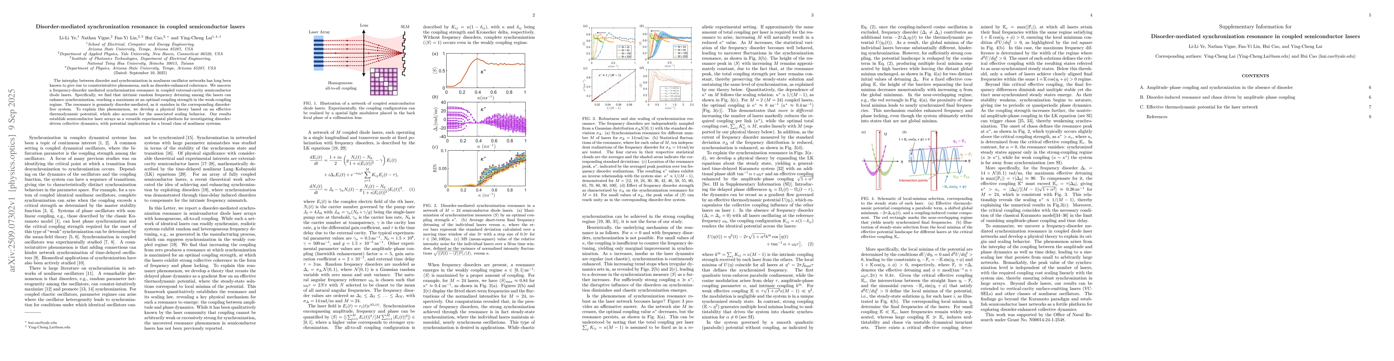 The interplay between disorder and synchronization in nonlinear oscillator networks has long been known to give rise to counterintuitive phenomena, such as disorder-enhanced coherence. We uncover a frequency-disorder mediated synchronization resonance in coupled external-cavity semiconductor diode lasers. Specifically, we find that intrinsic random frequency detuning among the lasers can enhance synchronization, reaching a maximum at an optimal coupling strength in the weak-coupling regime. The resonance is genuinely disorder-mediated, as it vanishes in the corresponding disorder-free system. To explain this phenomenon, we develop a physical theory based on an effective thermodynamic potential, which also accounts for the associated scaling behavior. Our results establish semiconductor laser arrays as a versatile experimental platform for investigating disorder-driven collective dynamics, with potential implications for a broad class of nonlinear systems.