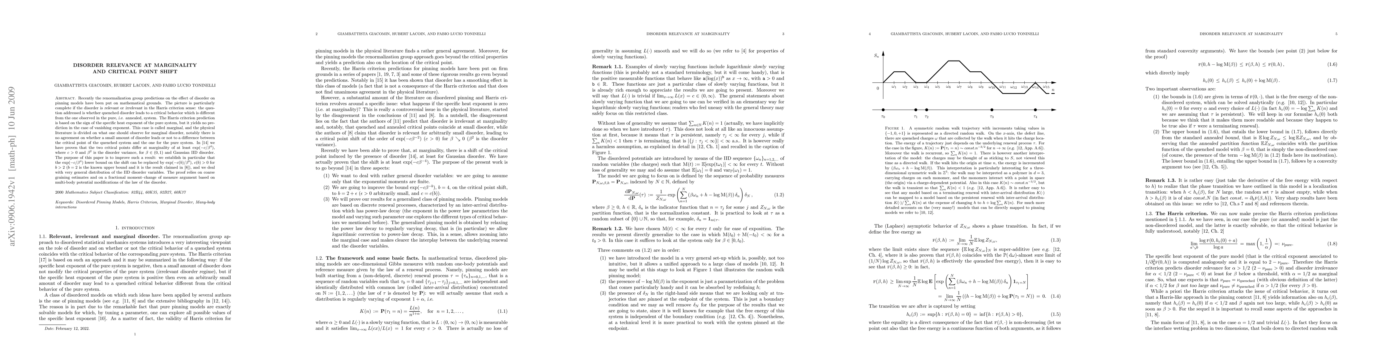 Recently the renormalization group predictions on the effect of disorder on pinning models have been put on mathematical grounds. The picture is particularly complete if the disorder is 'relevant' or 'irrelevant' in the Harris criterion sense: the question addressed is whether quenched disorder leads to a critical behavior which is different from the one observed in the pure, i.e. annealed, system. The Harris criterion prediction is based on the sign of the specific heat exponent of the pure system, but it yields no prediction in the case of vanishing exponent. This case is called 'marginal', and the physical literature is divided on what one should observe for marginal disorder, notably there is no agreement on whether a small amount of disorder leads or not to a difference between the critical point of the quenched system and the one for the pure system. In a previous work (arXiv:0811.0723) we have proven that the two critical points differ at marginality of at least exp(-c/beta^4), where c>0 and beta^2 is the disorder variance, for beta in (0,1) and Gaussian IID disorder. The purpose of this paper is to improve such a result: we establish in particular that the exp(-c/beta^4) lower bound on the shift can be replaced by exp(-c(b)/beta^b), c(b)>0 for b>2 (b=2 is the known upper bound and it is the result claimed in [Derrida, Hakim, Vannimenus, JSP 1992]), and we deal with very general distribution of the IID disorder variables. The proof relies on coarse graining estimates and on a fractional moment-change of measure argument based on multi-body potential modifications of the law of the disorder.