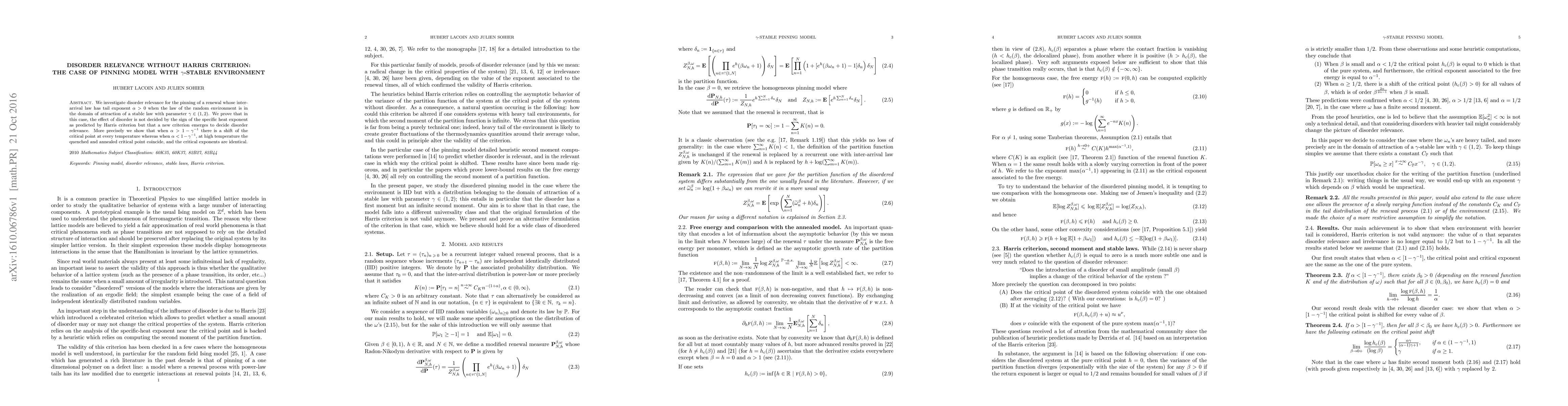 This paper examines the relevance of disorder in a pinning model with a $\gamma$-stable random environment, finding that the traditional Harris Criterion does not apply. Instead, a new criterion emerges, determining disorder relevance based on the tail exponent $\alpha$ of the inter-arrival law, with $\alpha>1-\gamma^{-1}$ leading to a shift in the critical point.