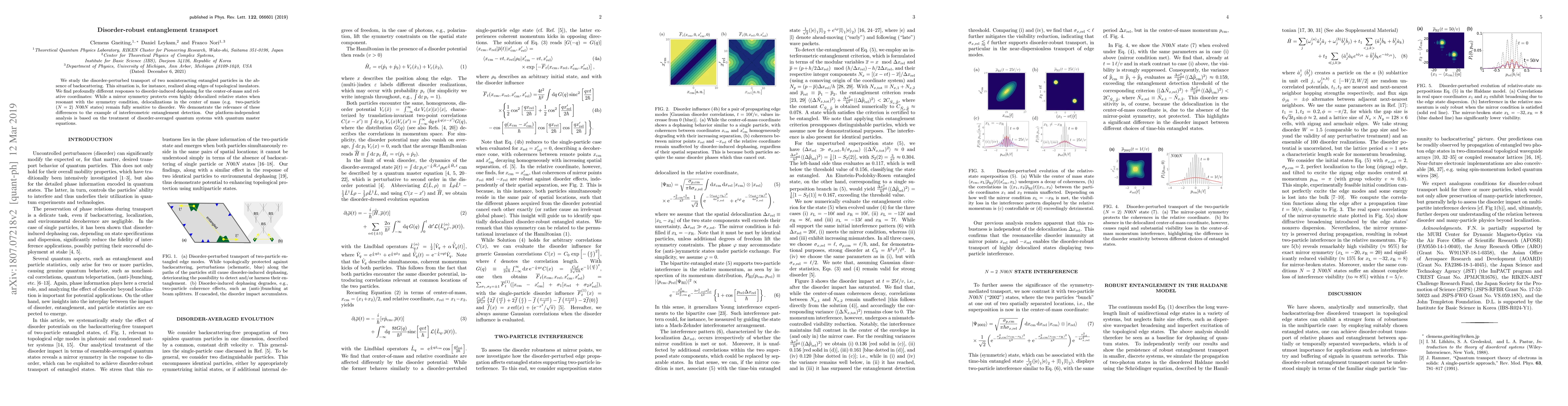 Entangled particles show different responses to disorder when transported along a topological insulator's edge, with some being protected by symmetry while others remain sensitive to disorder.