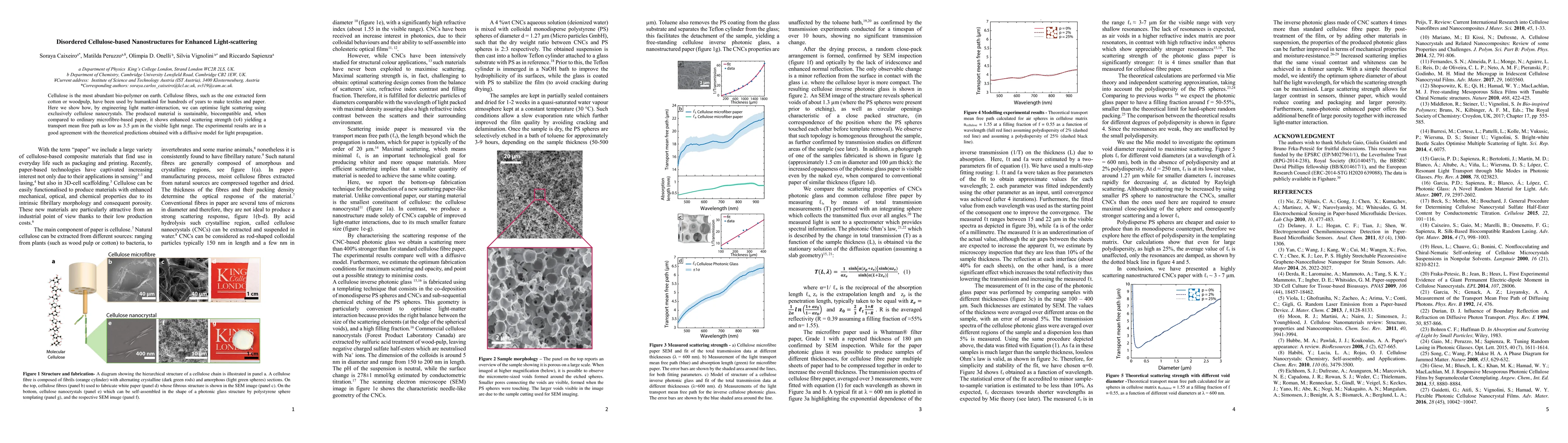This paper demonstrates the optimization of light scattering using engineered cellulose nanocrystals, resulting in a sustainable, biocompatible material with enhanced scattering strength (x4) compared to conventional microfibre-based paper. The findings align well with theoretical predictions from a diffusive light propagation model.