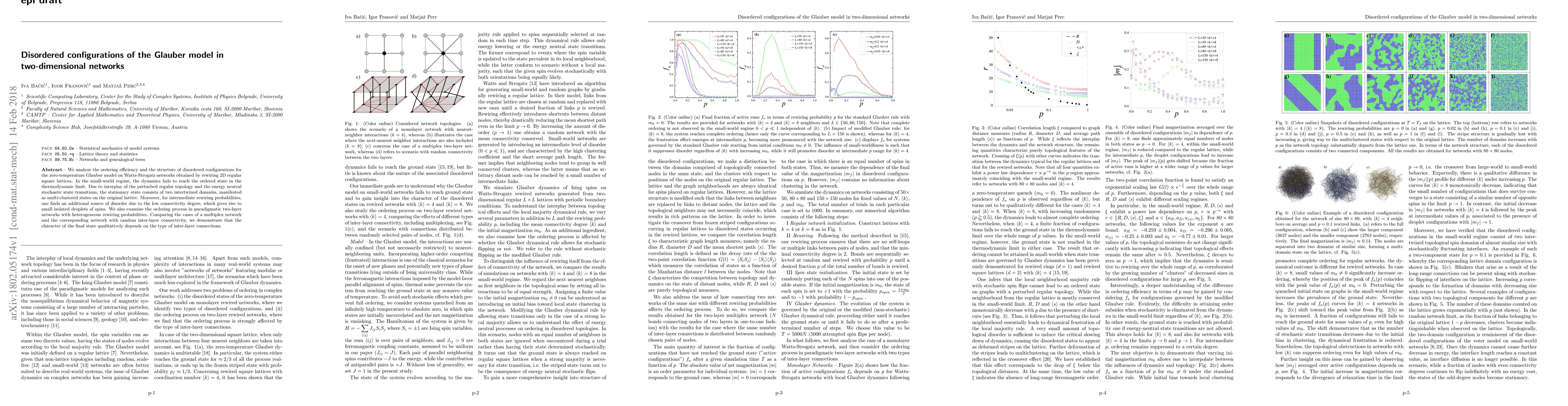 We analyze the ordering efficiency and the structure of disordered configurations for the zero-temperature Glauber model on Watts-Strogatz networks obtained by rewiring 2D regular square lattices. In the small-world regime, the dynamics fails to reach the ordered state in the thermodynamic limit. Due to interplay of the perturbed regular topology and the energy neutral stochastic state transitions, the stationary state consists of two intertwined domains, manifested as multi-clustered states on the original lattice. Moreover, for intermediate rewiring probabilities, one finds an additional source of disorder due to the low connectivity degree, which gives rise to small isolated droplets of spins. We also examine the ordering process in paradigmatic two-layer networks with heterogeneous rewiring probabilities. Comparing the cases of a multiplex network and the corresponding network with random inter-layer connectivity, we demonstrate that the character of the final state qualitatively depends on the type of inter-layer connections.