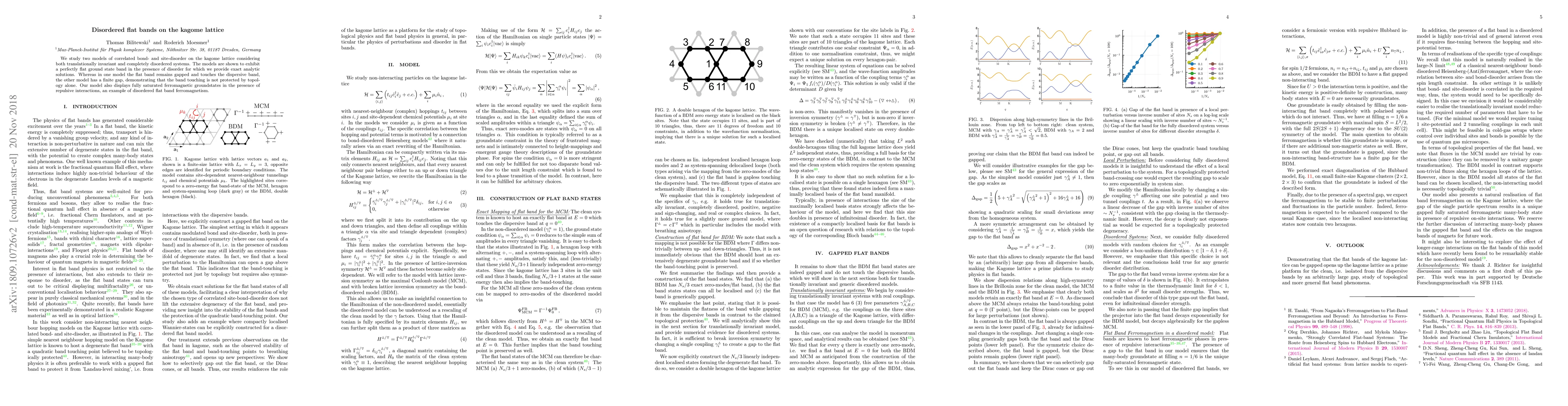 This research explores disordered kagome lattice models, revealing perfectly flat ground state bands with exact analytic solutions. One model is gapped with band touching, while the other has a finite gap, indicating disordered flat band ferromagnetism with repulsive interactions.