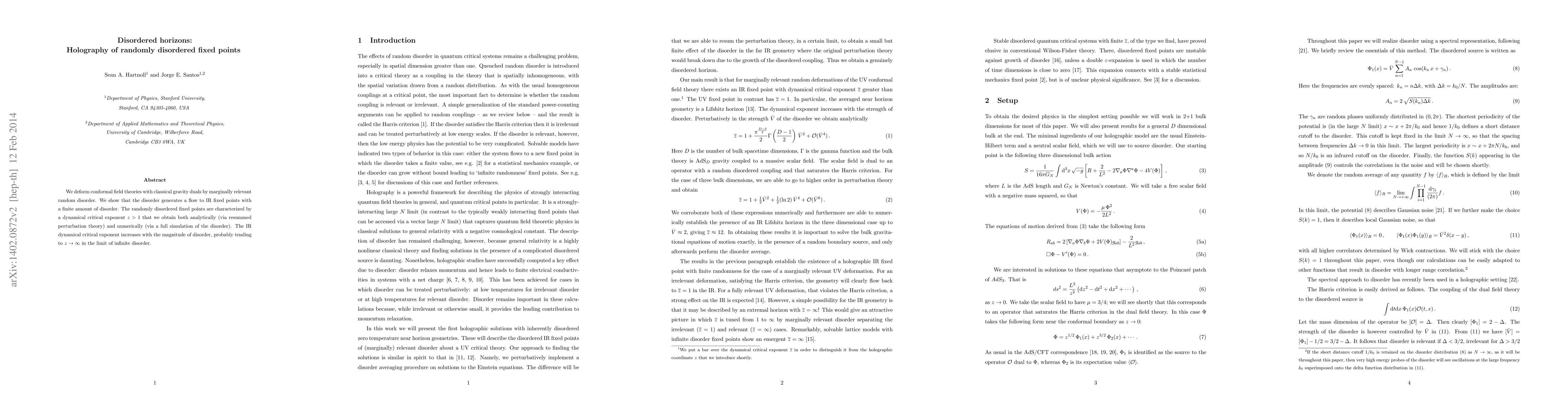 This paper explores the effects of random disorder on conformal field theories with a gravity dual, demonstrating that it leads to infrared fixed points characterized by a dynamical critical exponent $z>1$. Both analytical and numerical methods show that $z$ increases with disorder, potentially tending to infinity as disorder becomes infinite.