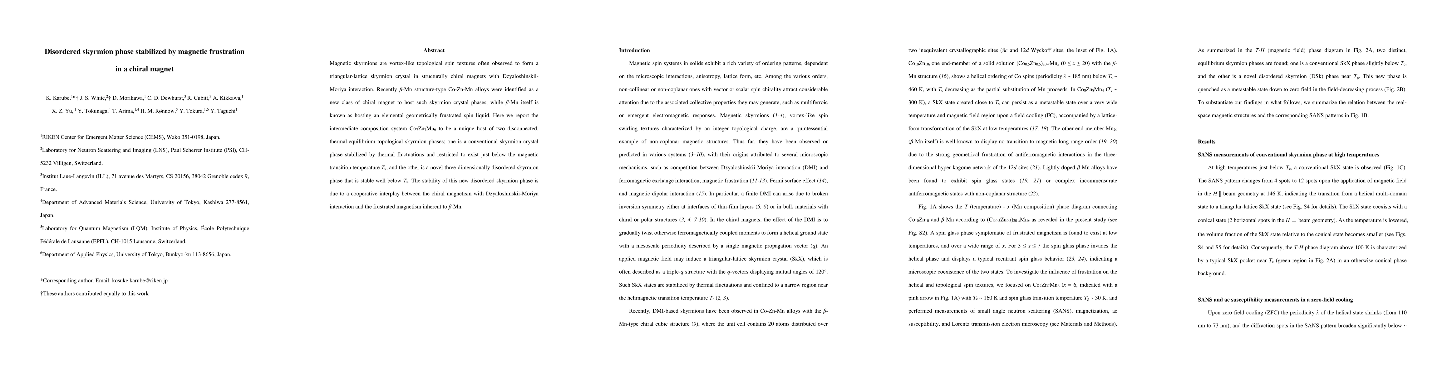 This study identifies Co$_7$Zn$_7$Mn$_6$ as a material hosting two distinct skyrmion phases, including a disordered skyrmion phase stabilized by magnetic frustration and chiral magnetism, alongside a conventional skyrmion crystal phase. The unique stability of the disordered phase is attributed to the interplay between Dzyaloshinskii-Moriya interaction and geometric frustration.