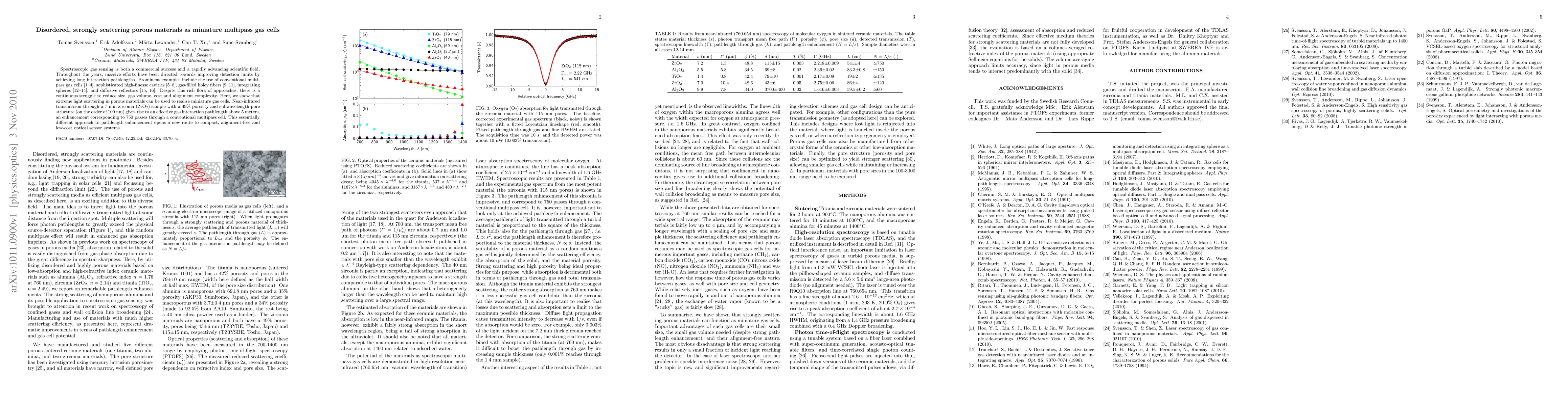 This paper demonstrates that disordered, strongly scattering porous materials can function as miniature multipass gas cells, achieving an effective gas interaction pathlength of over 5 meters through a 7 mm zirconia sample, significantly enhancing spectroscopic gas sensing capabilities in a compact, alignment-free, and low-cost manner.