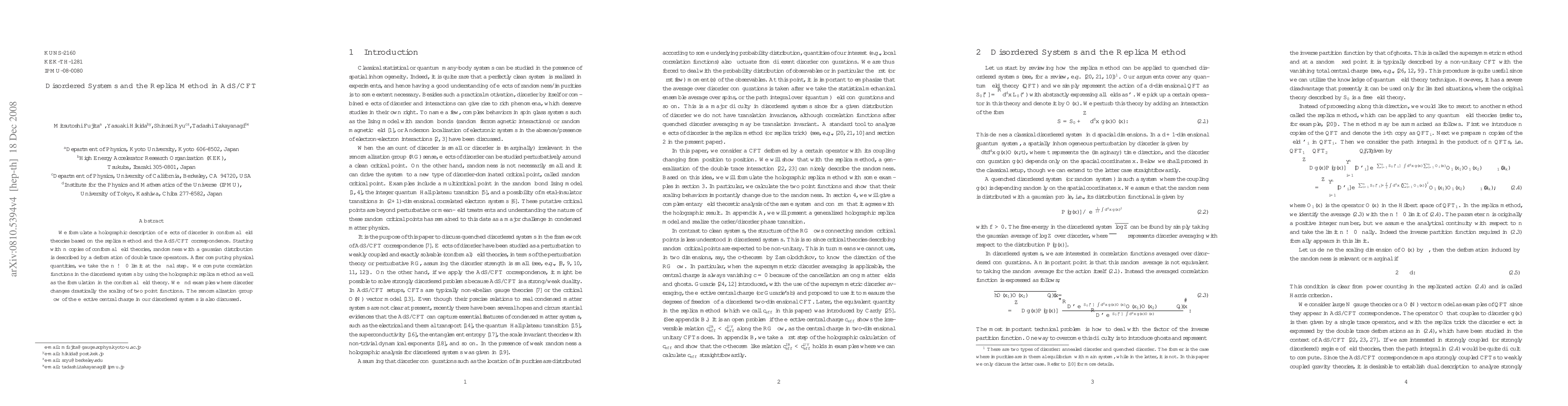 Researchers developed a holographic description of disorder effects in conformal field theories using the replica method and AdS/CFT correspondence, finding that disorder drastically changes scaling behavior of two-point functions.