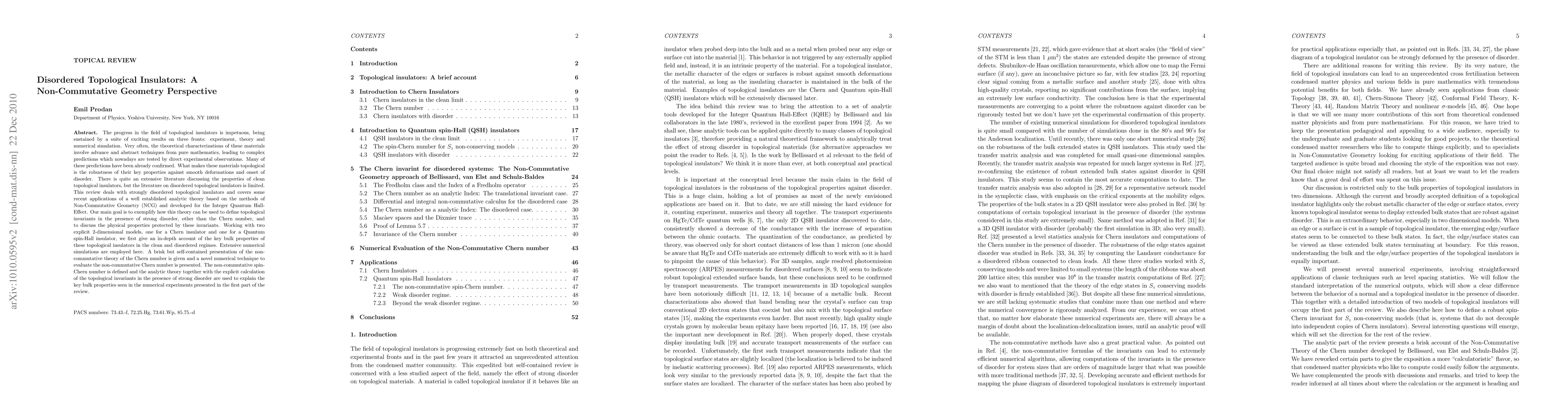 This review explores strongly disordered topological insulators using Non-Commutative Geometry (NCG) and demonstrates how this theory defines topological invariants beyond the Chern number, explaining their protected physical properties. It employs numerical simulations and a novel technique to evaluate these invariants in 2D models of Chern and Quantum spin-Hall insulators.