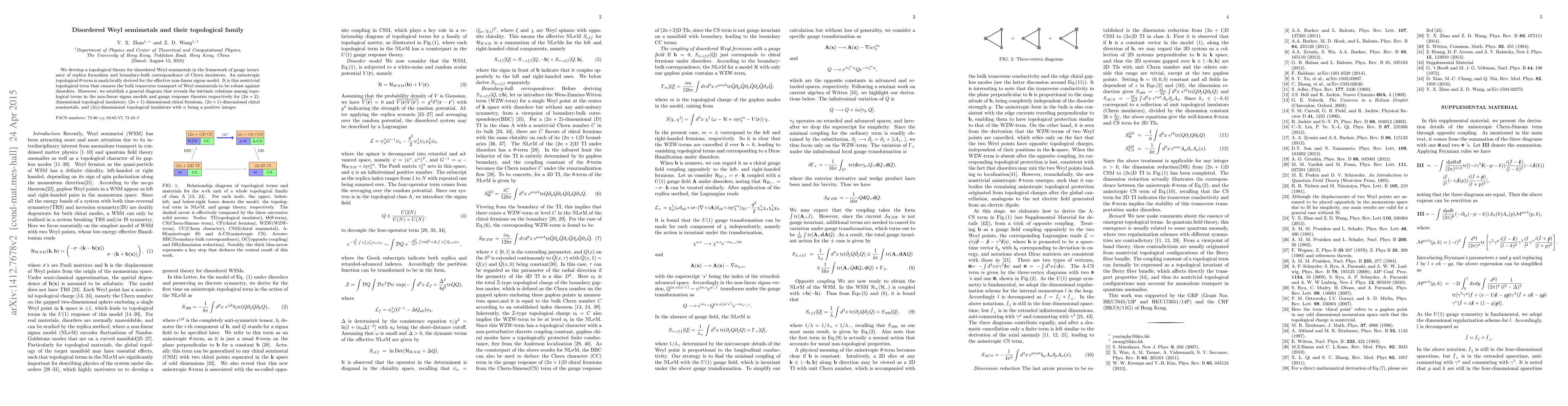 This paper develops a topological theory for disordered Weyl semimetals, using replica formalism and Chern insulator concepts to derive an anisotropic topological $\theta$-term that ensures robust bulk transverse transport despite disorder. It also establishes a diagram linking topological terms in non-linear sigma models and gauge response theories across various dimensional topological phases.