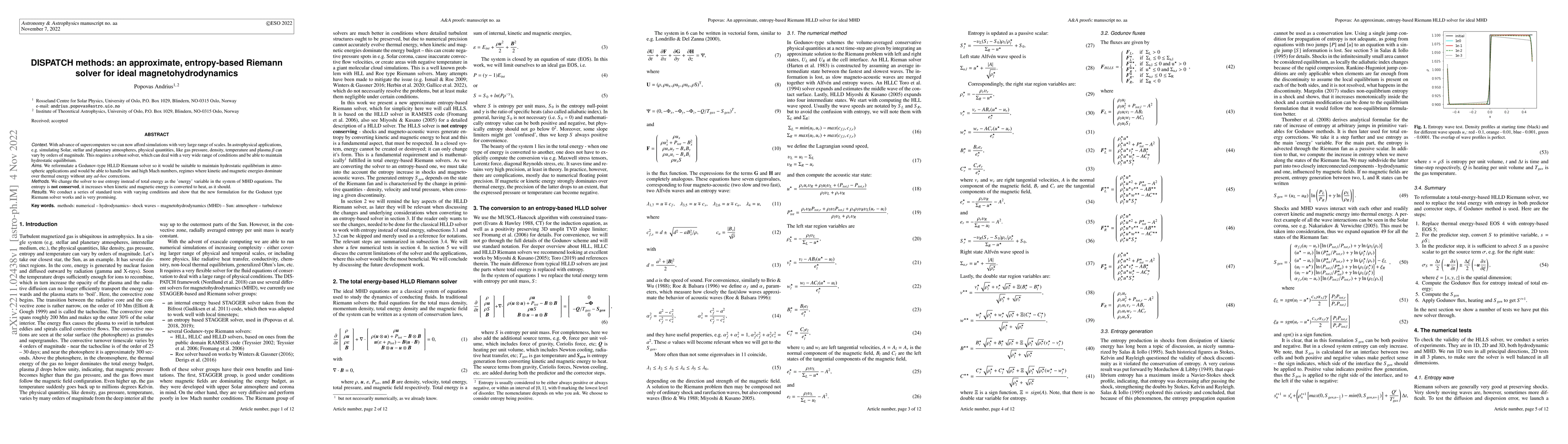 This paper introduces DISPATCH, an entropy-based Riemann solver for ideal magnetohydrodynamics, designed to handle large scale simulations in astrophysics. The reformulated Godunov-type HLLD solver maintains hydrostatic equilibrium and effectively manages a wide range of physical conditions without ad-hoc corrections.