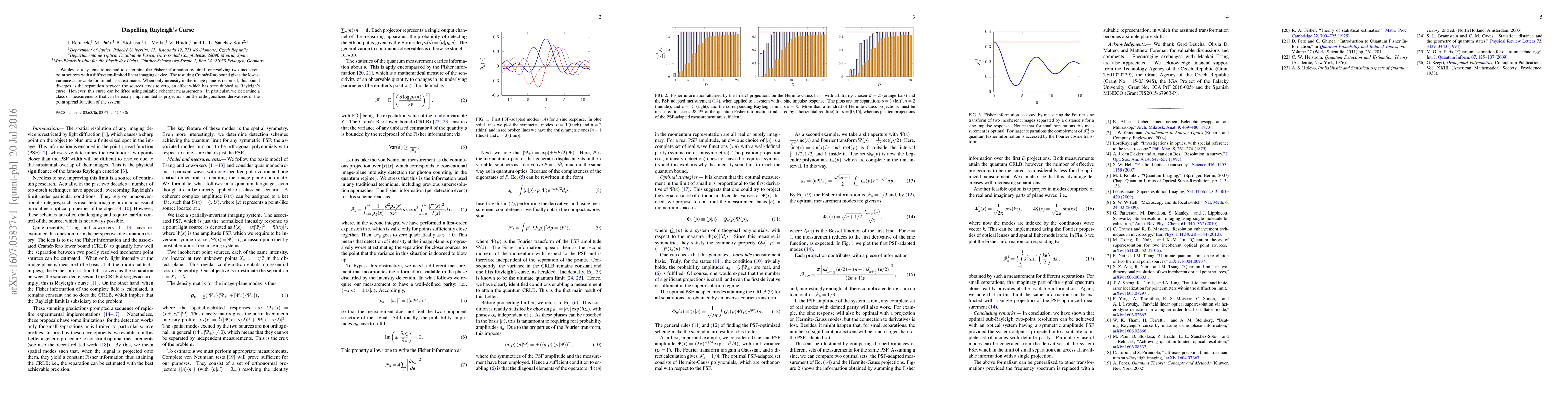 We devise a systematic method to determine the Fisher information required for resolving two incoherent point sources with a diffraction-limited linear imaging device. The resulting Cram\'er-Rao bound gives the lowest variance achievable for an unbiased estimator. When only intensity in the image plane is recorded, this bound diverges as the separation between the sources tends to zero, an effect which has been dubbed as Rayleigh's curse. However, this curse can be lifted using suitable coherent measurements. In particular, we determine a class of measurements that can be easily implemented as projections on the orthogonalised derivatives of the point spread function of the system.