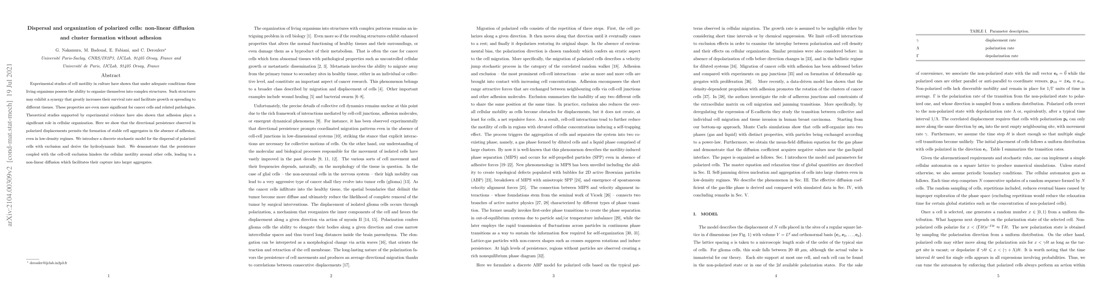 Researchers found that polarized cells can form stable aggregates without adhesion, using a model that shows non-linear diffusion facilitates capture into larger groups, increasing survival rates and growth in low-density regimes.